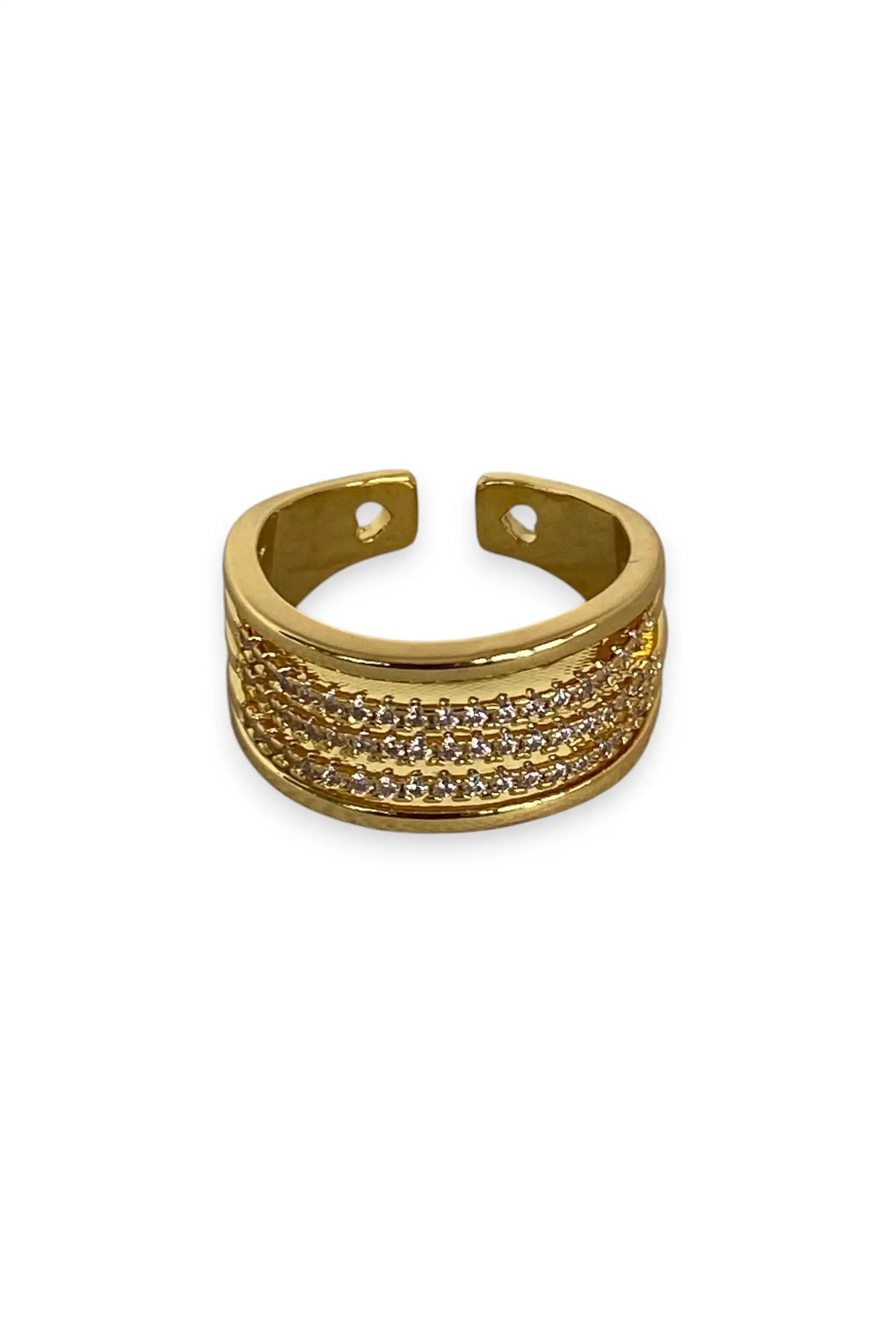 Altın Renk Taş Detaylı Ayarlanabilir Çelik Yüzük