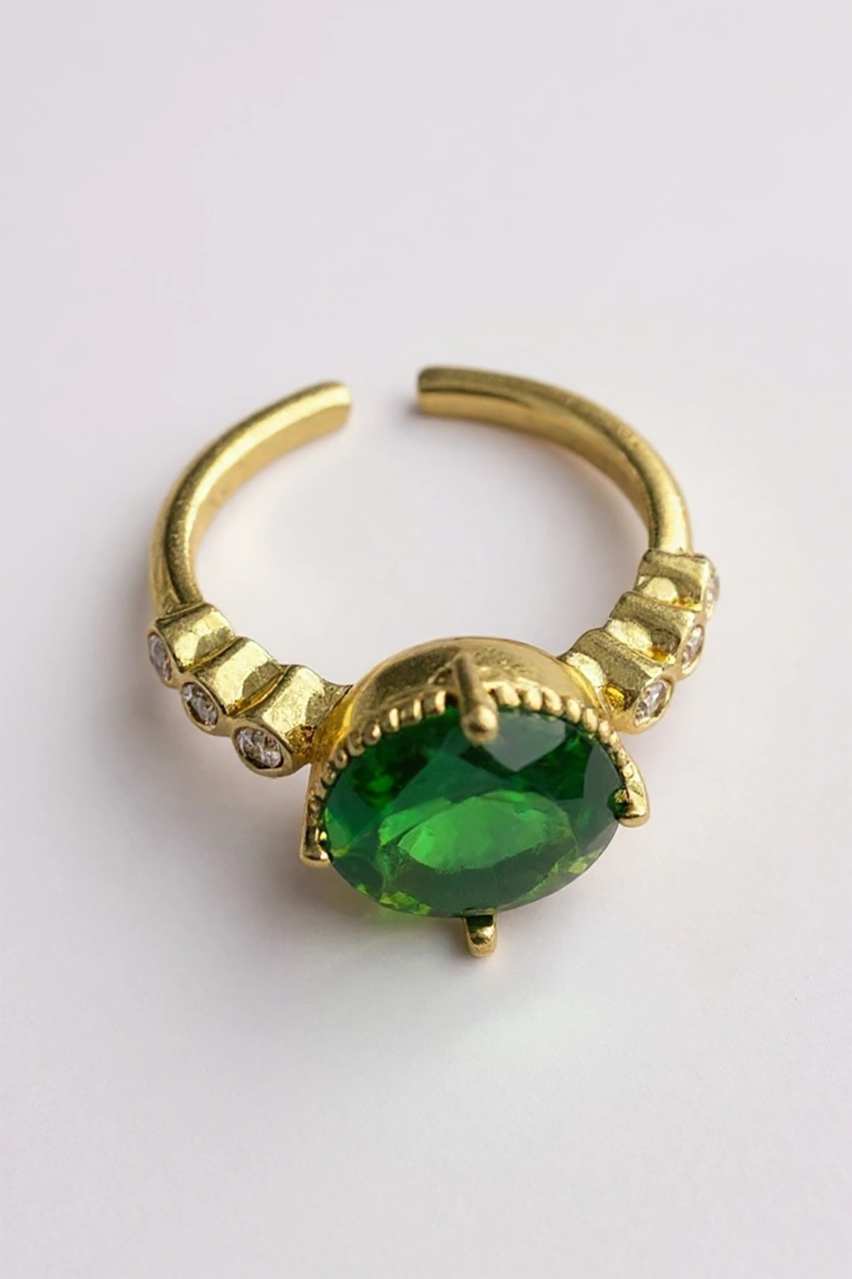 Altın Renk Taş Detaylı Ayarlanabilir Çelik Yüzük