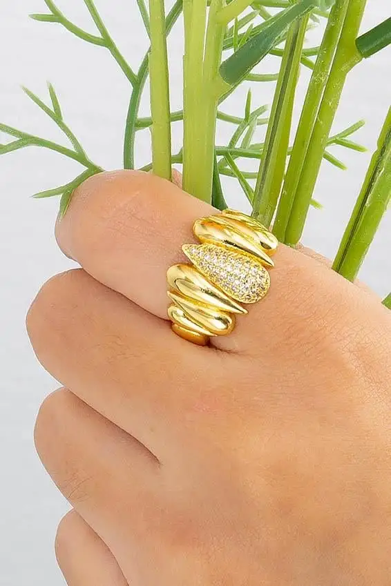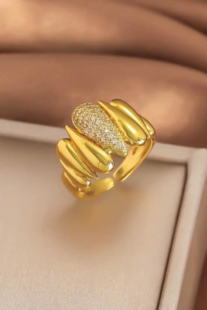 Altın Renk Taş Detaylı Ayarlanabilir Çelik Yüzük