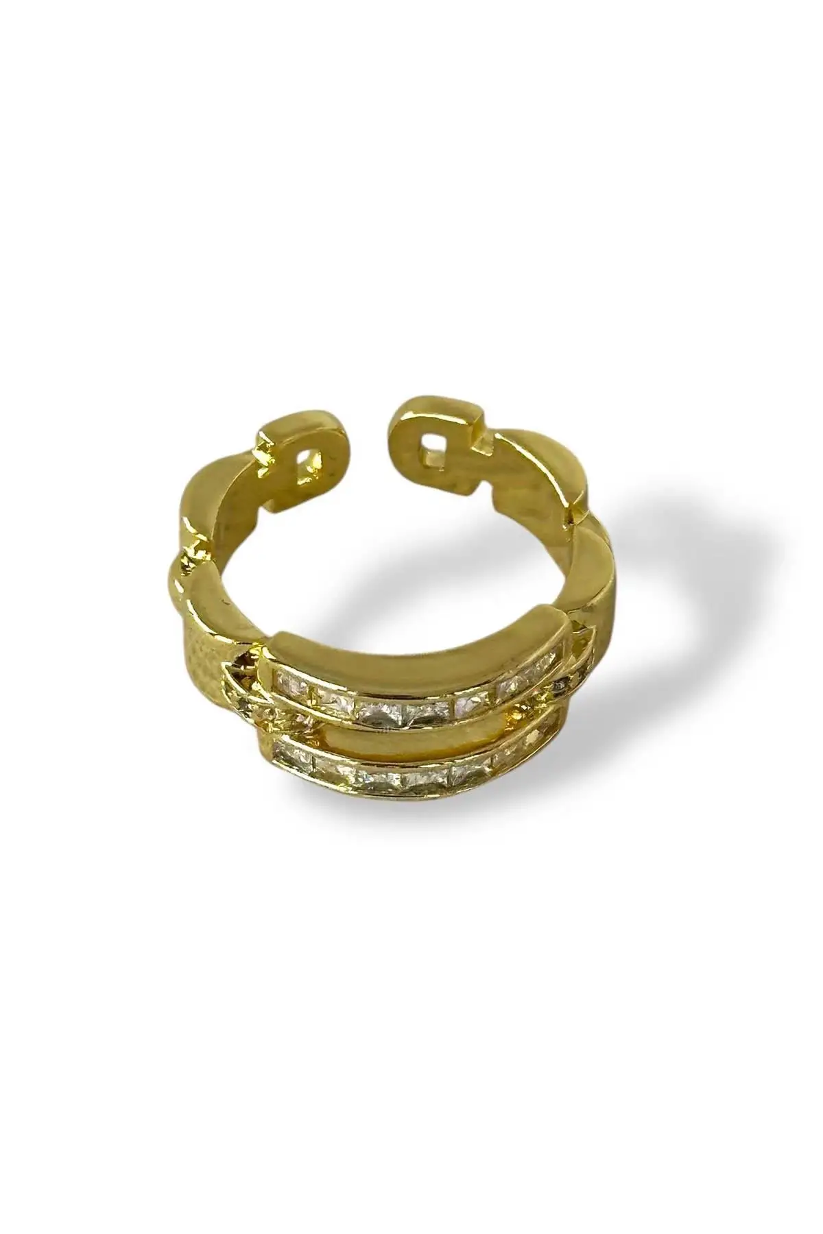 Altın Renk Taş Detaylı Ayarlanabilir Çelik Yüzük