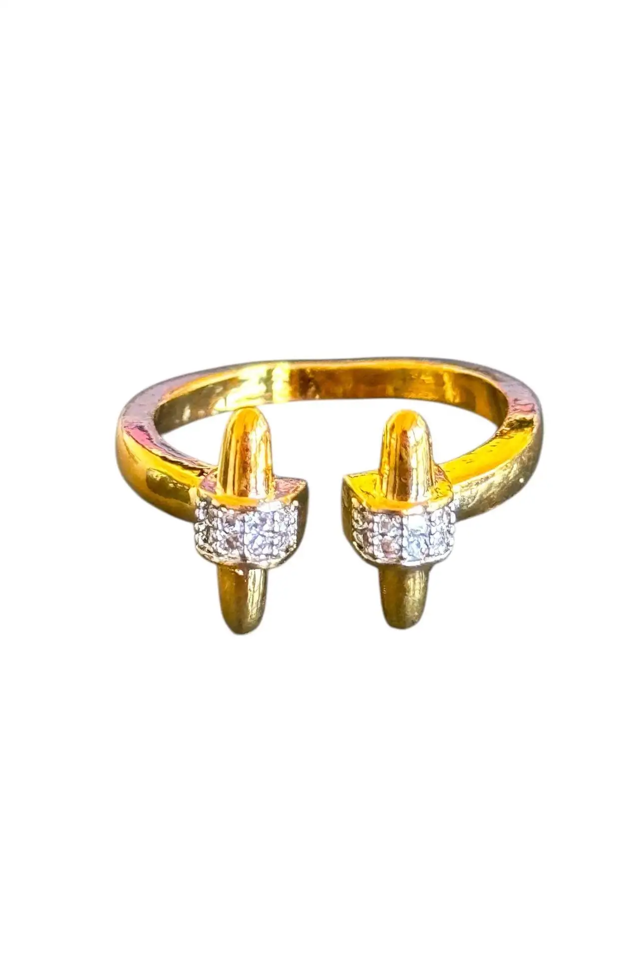 Altın Renk Taş Detaylı Ayarlanabilir Çelik Yüzük