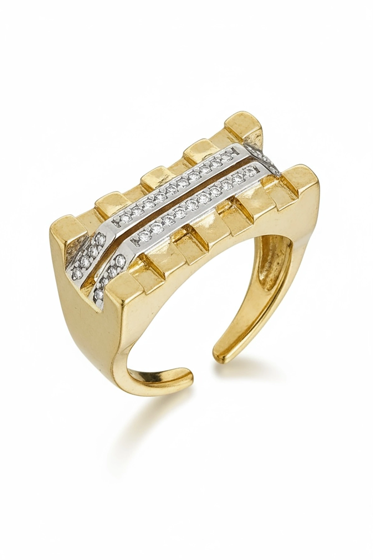 Altın Renk Taş Detaylı Ayarlanabilir Çelik Yüzük