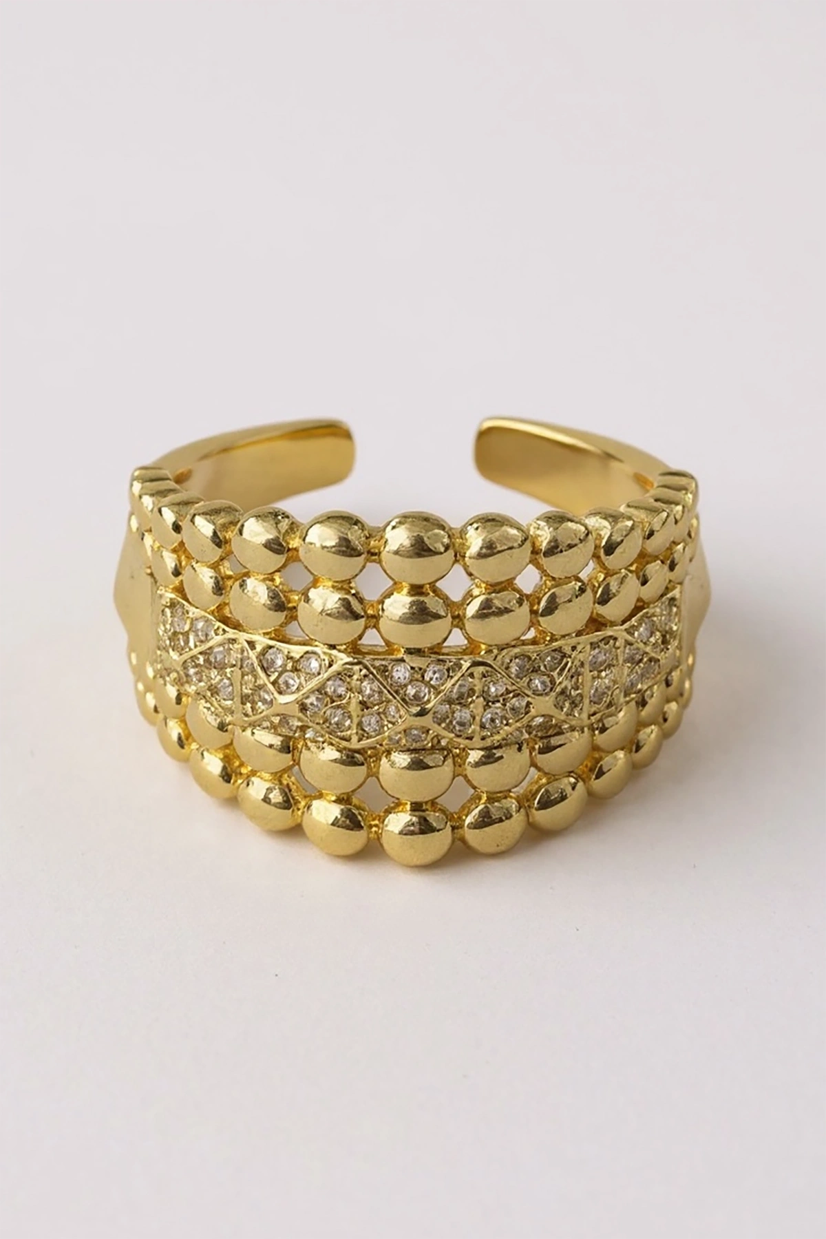 Altın Renk Taş Detaylı Ayarlanabilir Çelik Yüzük