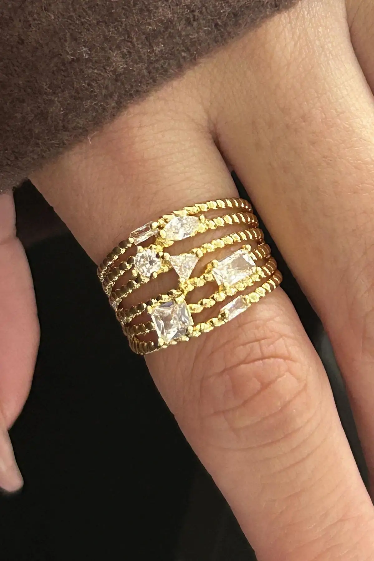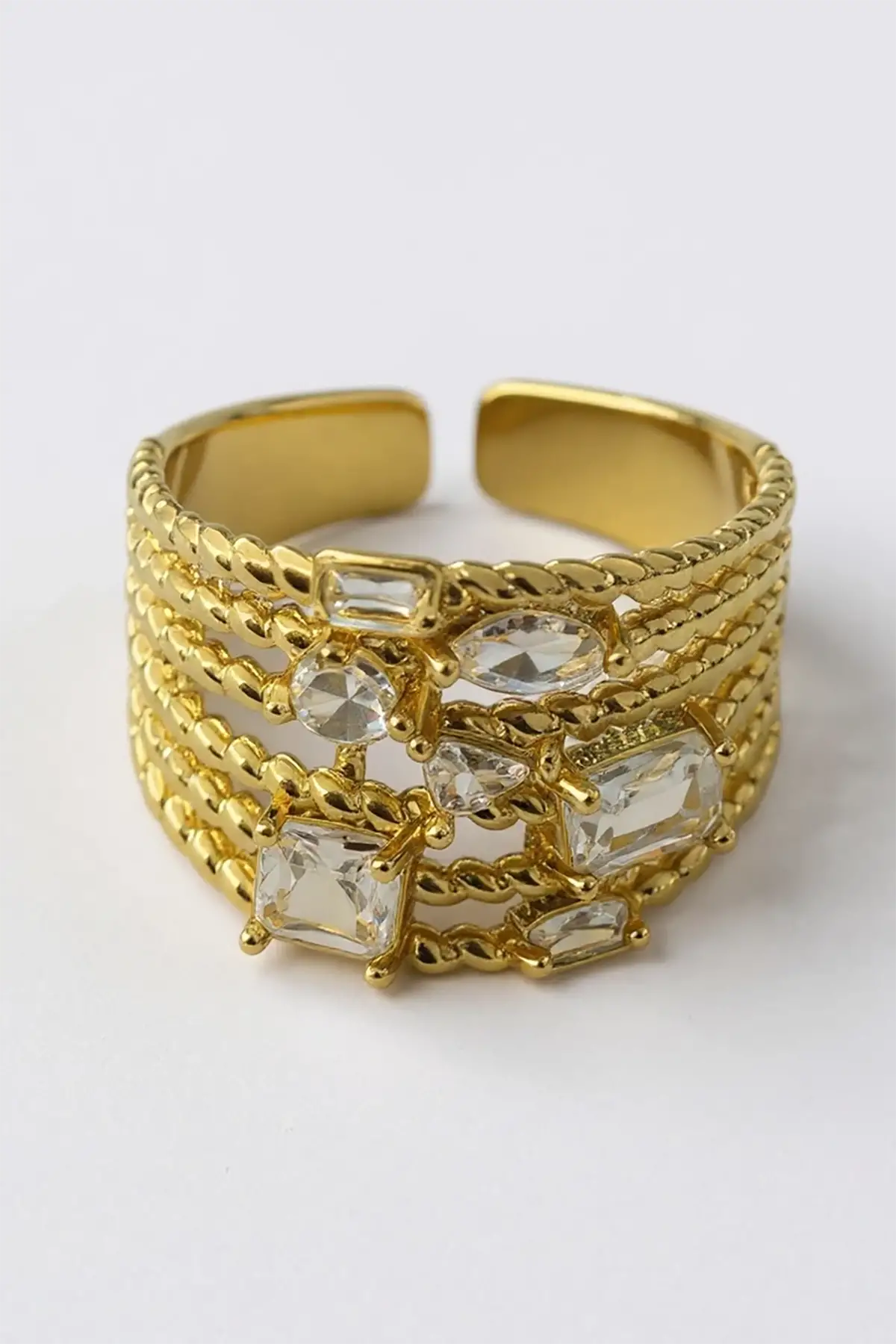Altın Renk Taş Detaylı Ayarlanabilir Çelik Yüzük