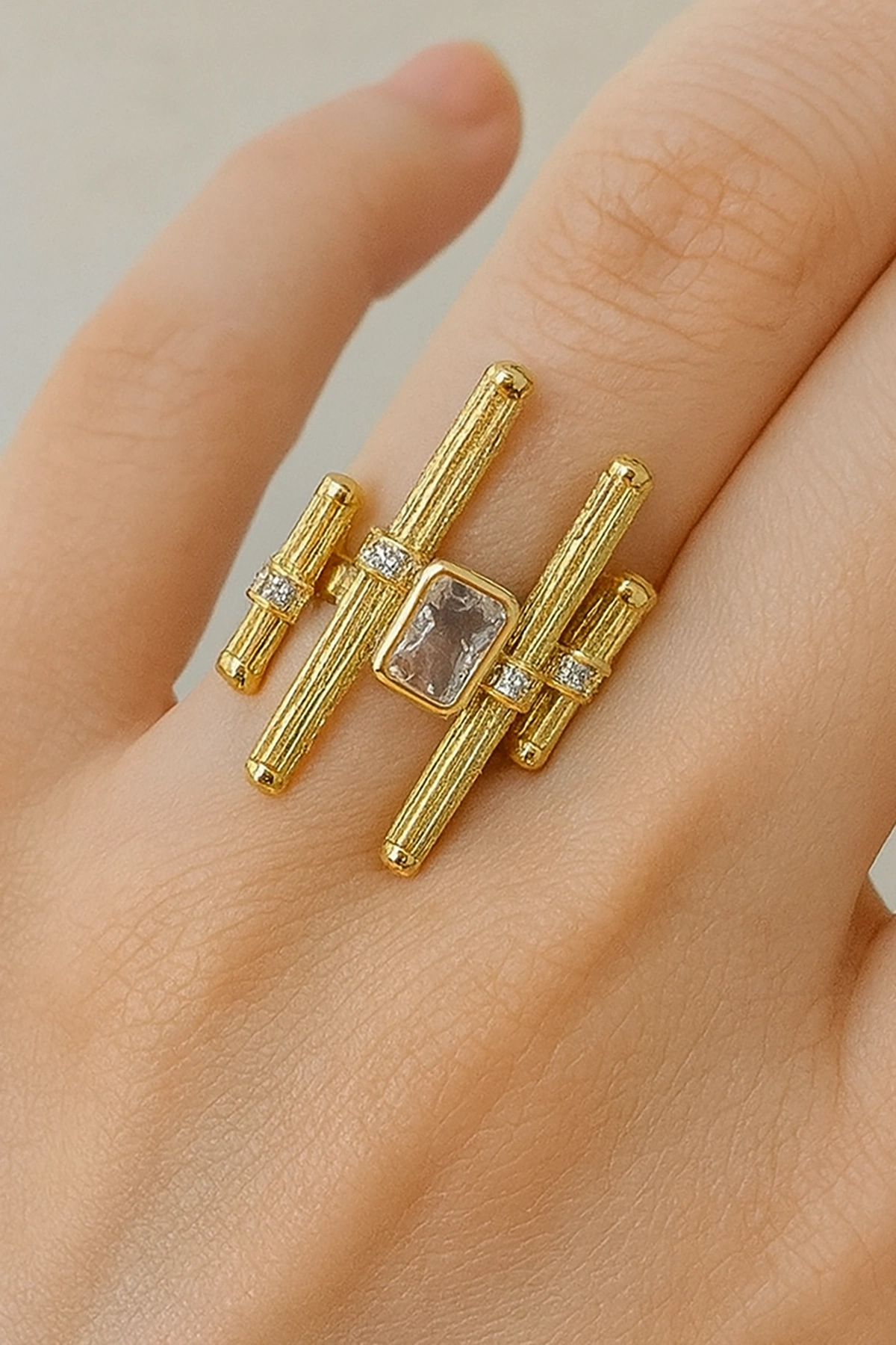 Altın Renk Taş Detaylı Ayarlanabilir YSX Yüzük
