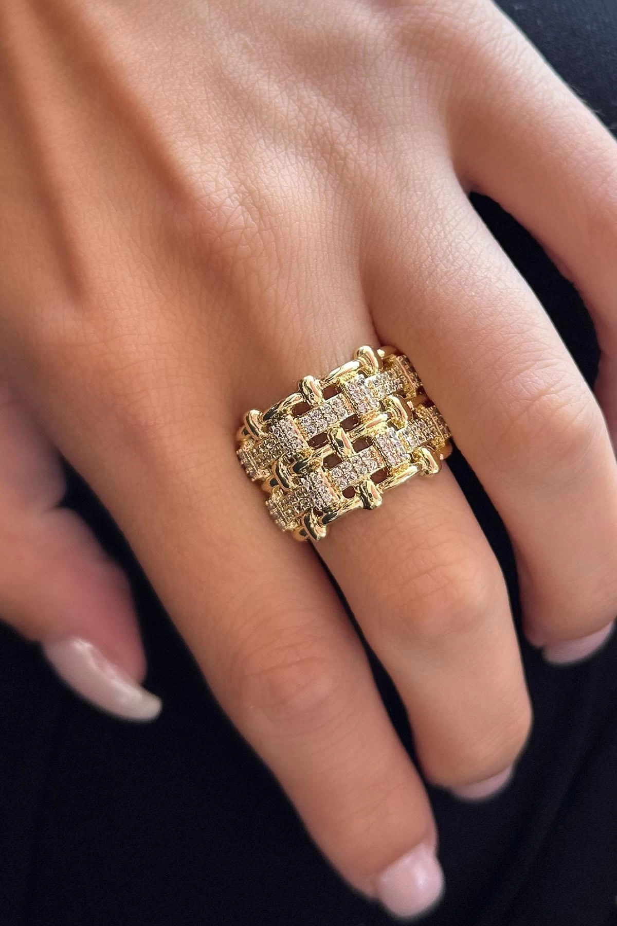 Altın Renk Taş Detaylı Ayarlanabilir YSX Yüzük