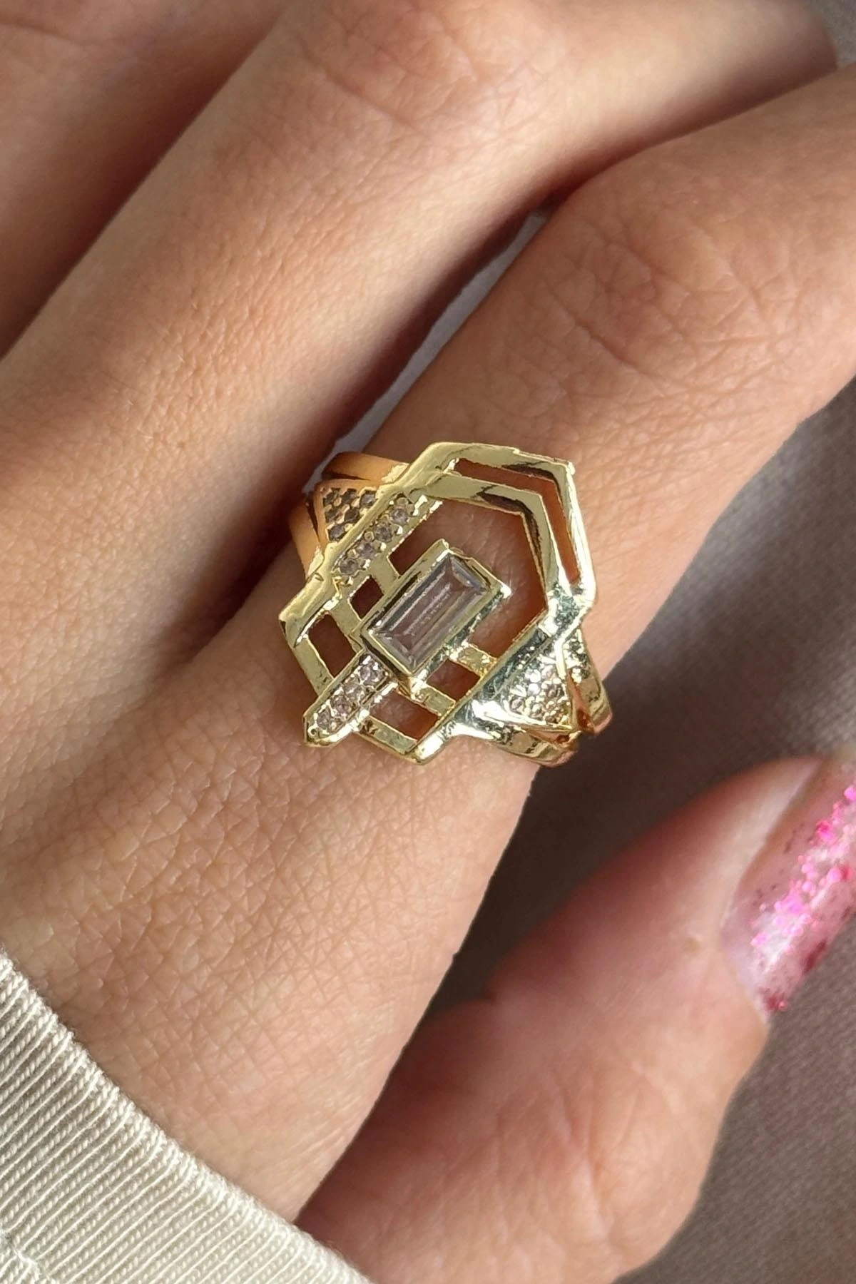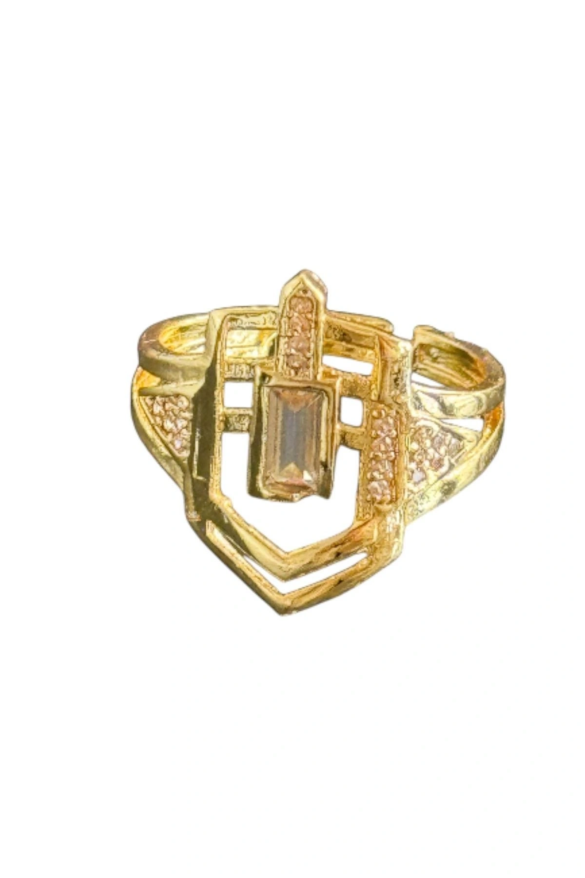 Altın Renk Taş Detaylı Ayarlanabilir Yüzük
