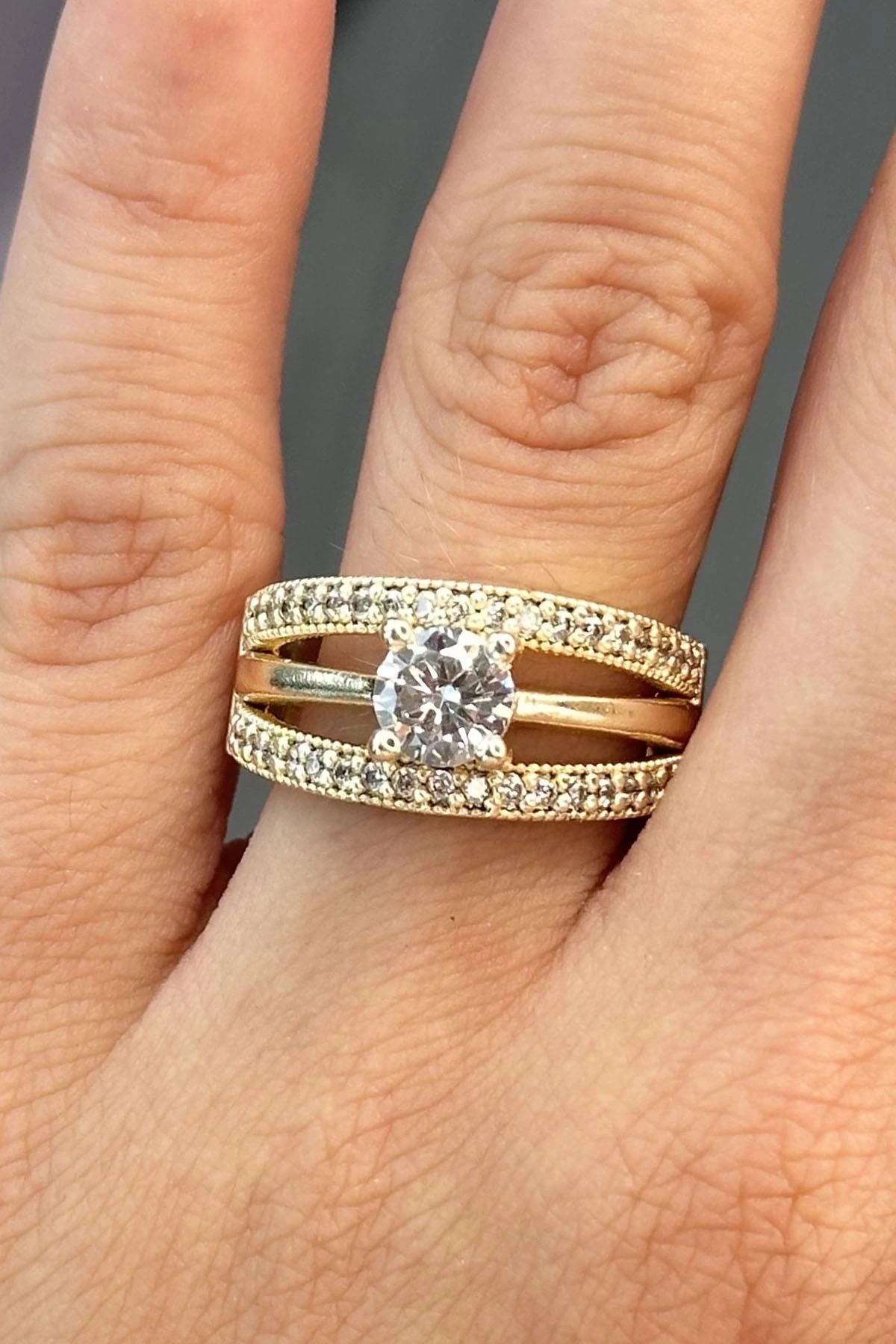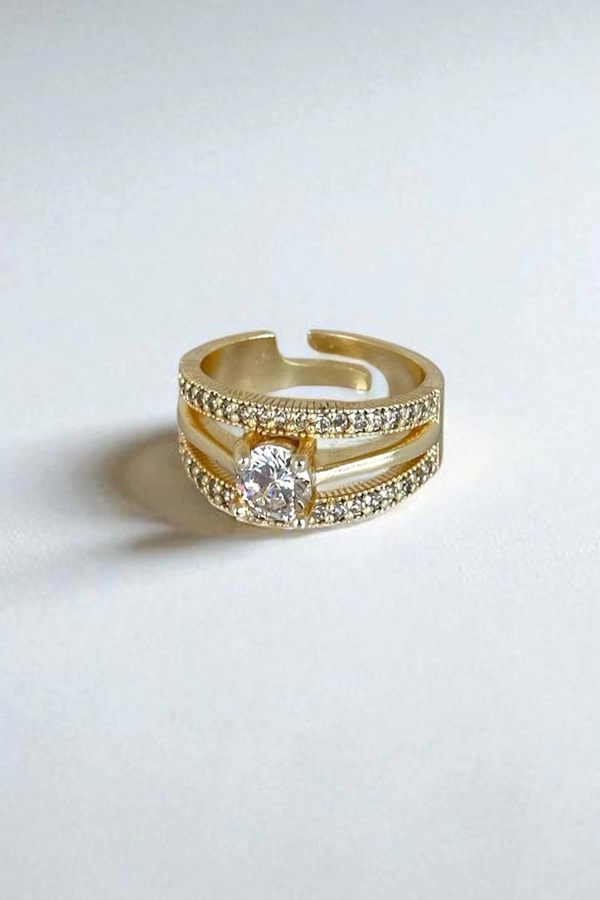 Altın Renk Taş Detaylı Ayarlanabilir Yüzük