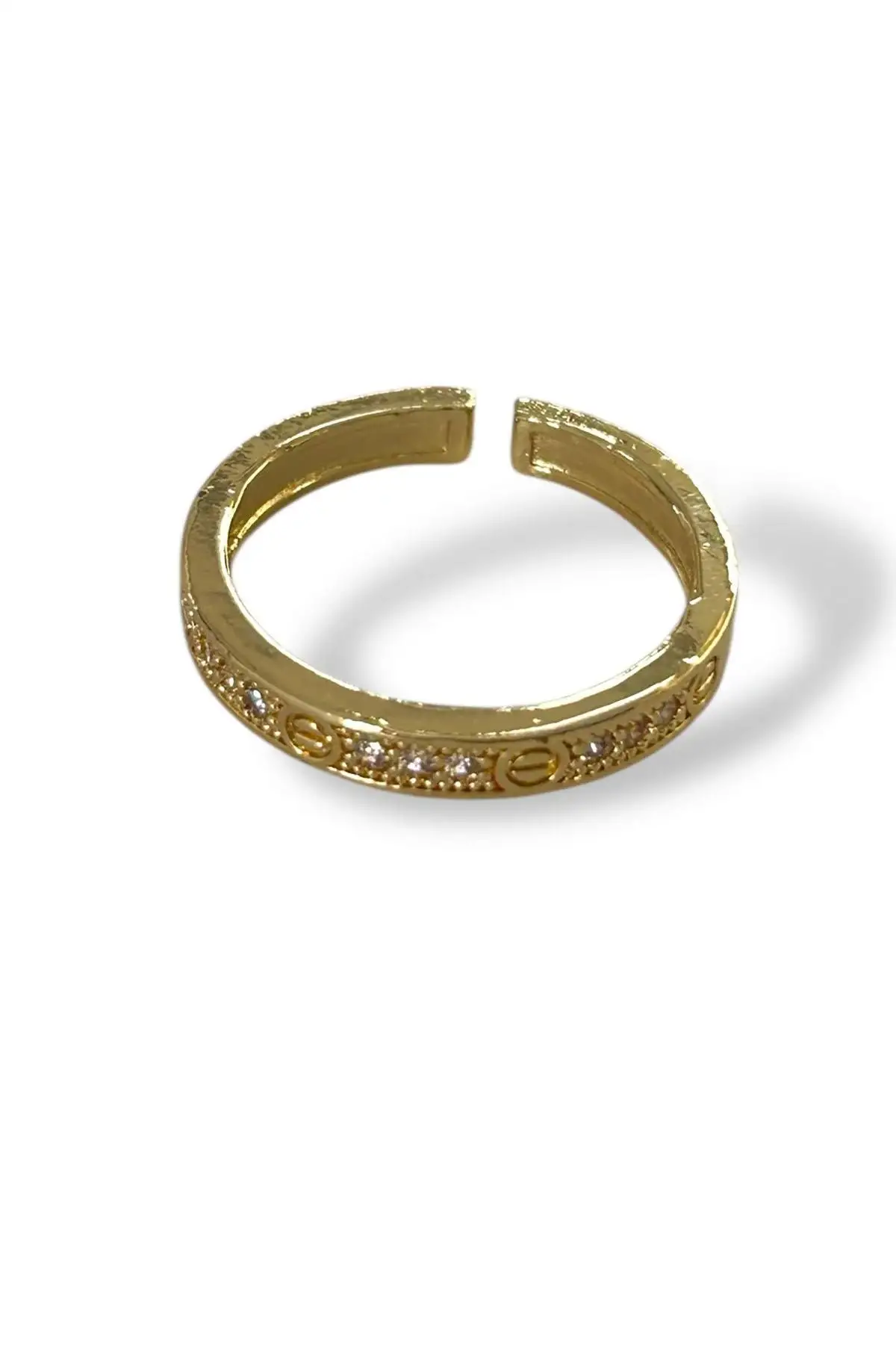 Altın Renk Taş Detaylı Ayarlanabilir Yüzük