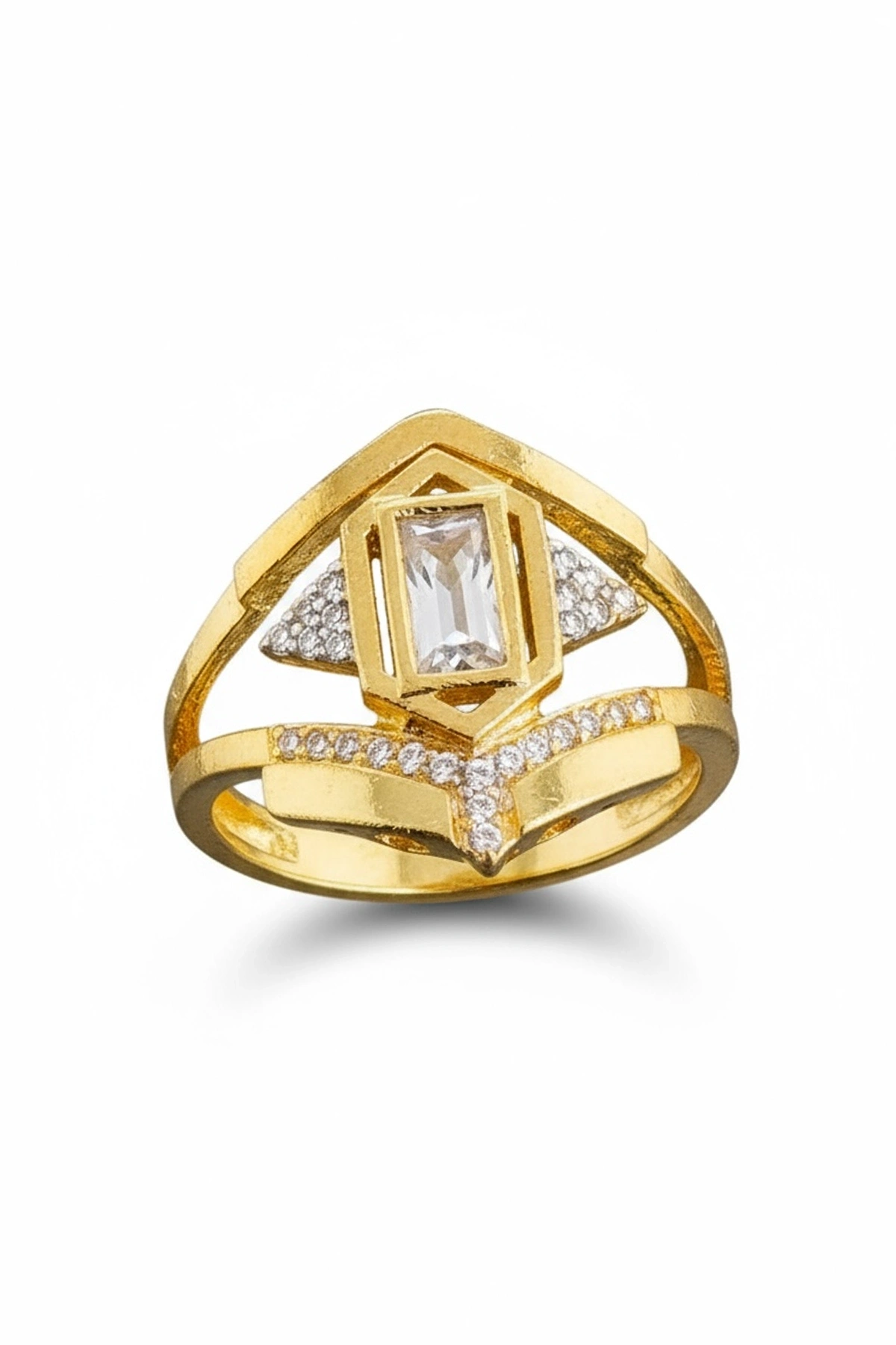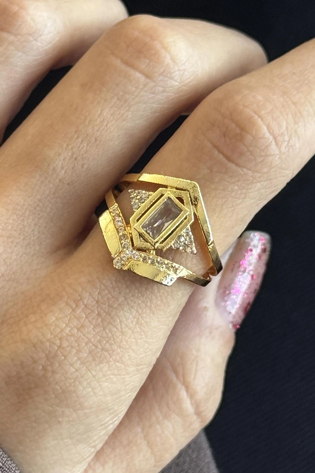 Altın Renk Taş Detaylı Ayarlanabilir Yüzük