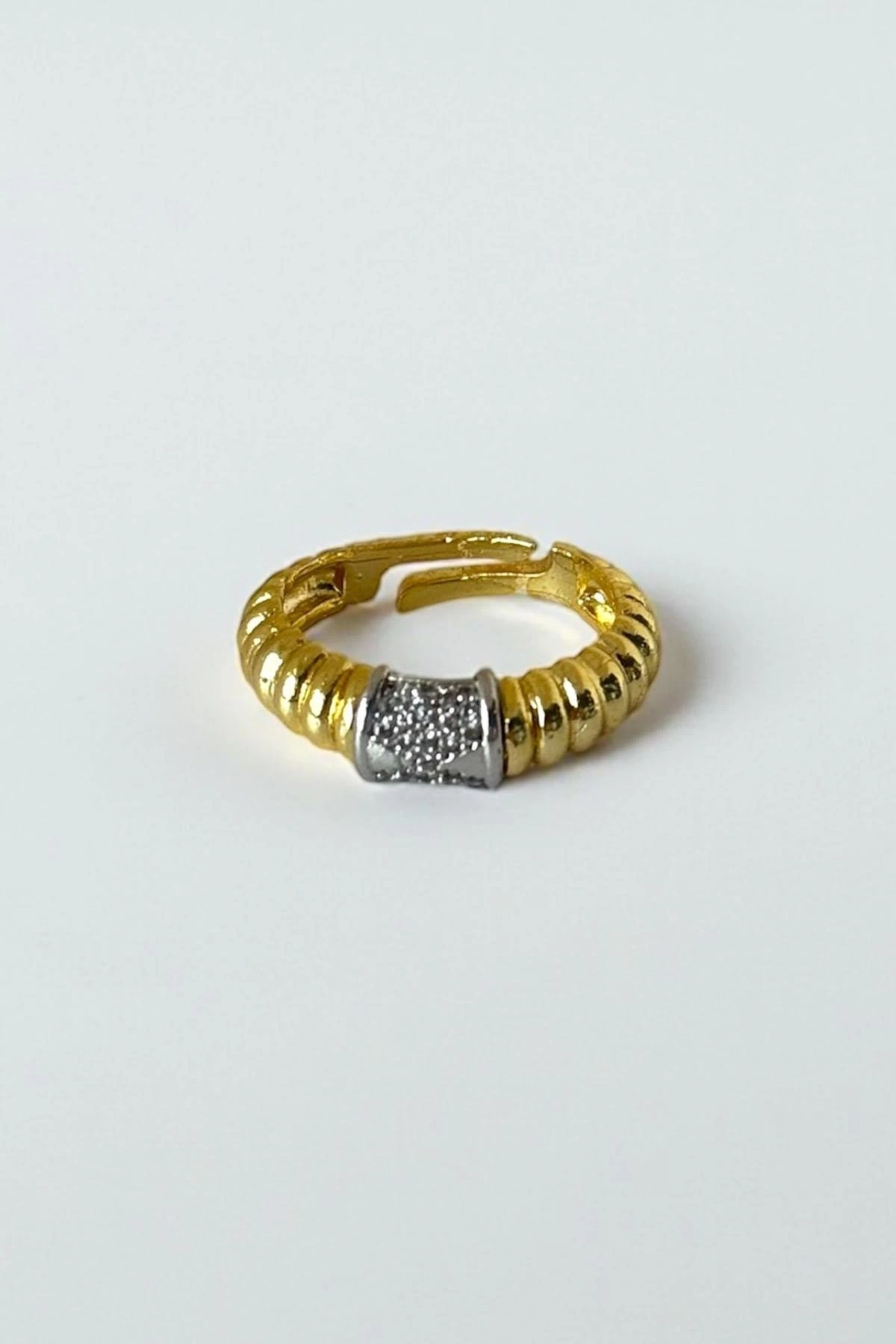 Altın Renk Taş Detaylı Ayarlanabilir Yüzük