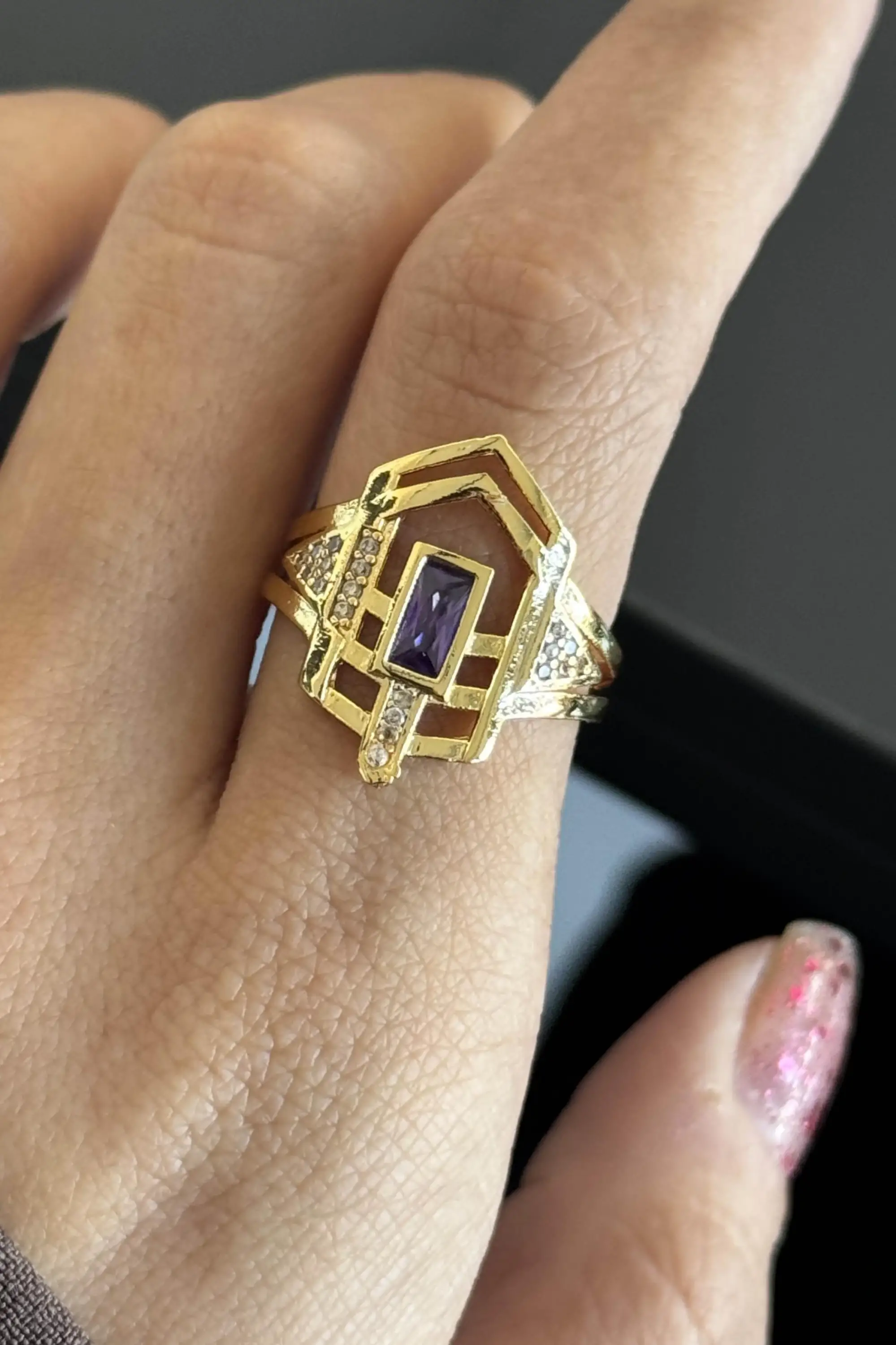 Altın Renk Taş Detaylı Ayarlanabilir Yüzük