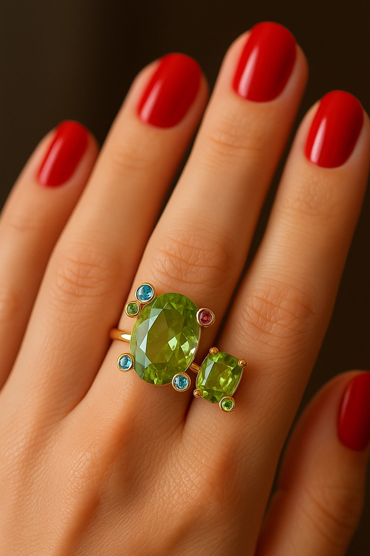 Altın Renk Taş Detaylı Ayarlanabilir Yüzük