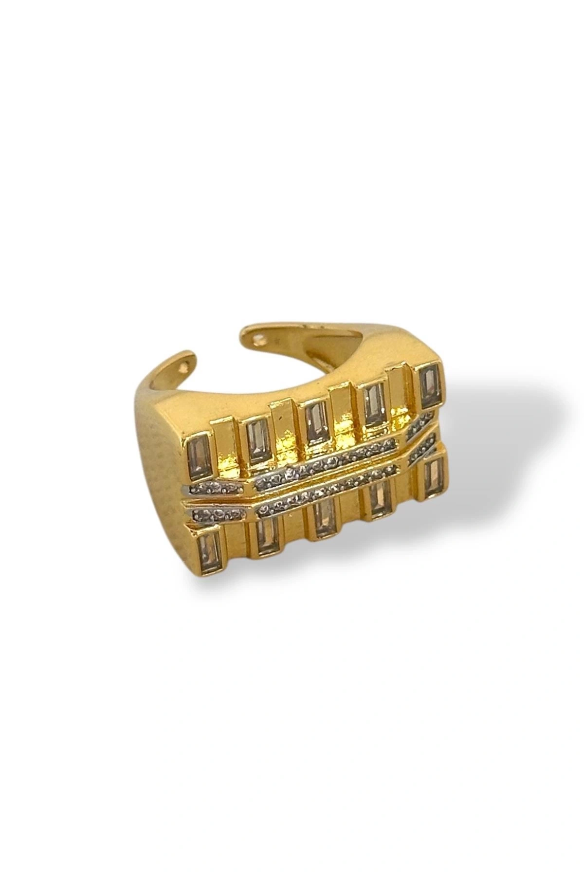 Altın Renk Taş Detaylı Ayarlanabilir Yüzük