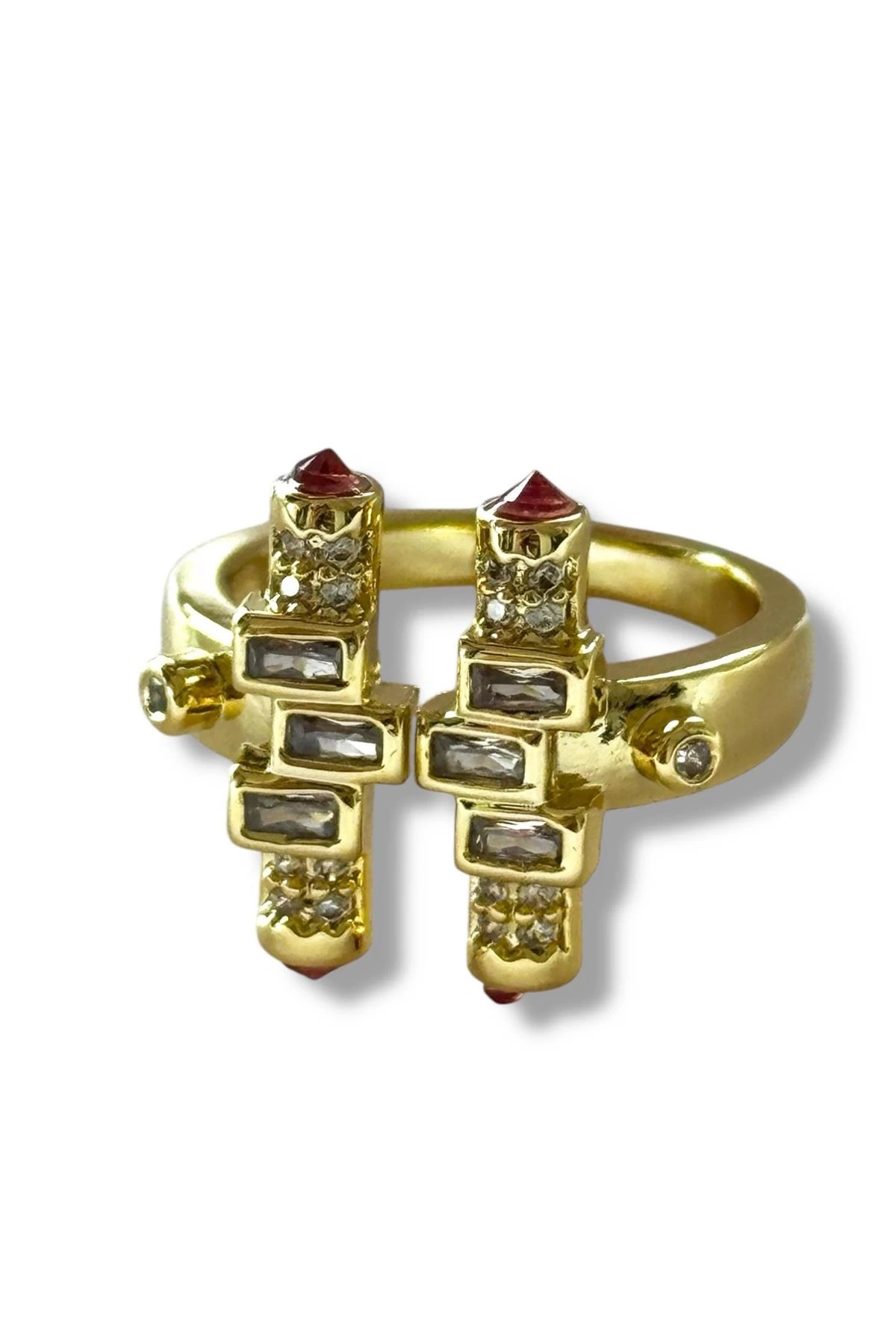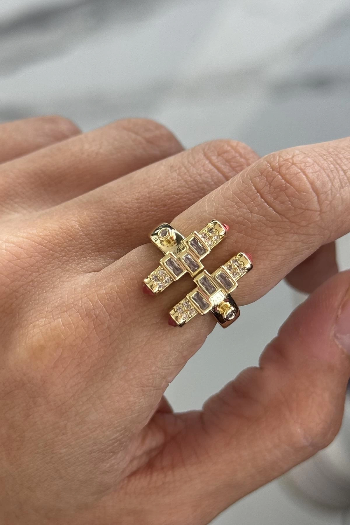 Altın Renk Taş Detaylı Ayarlanabilir Yüzük