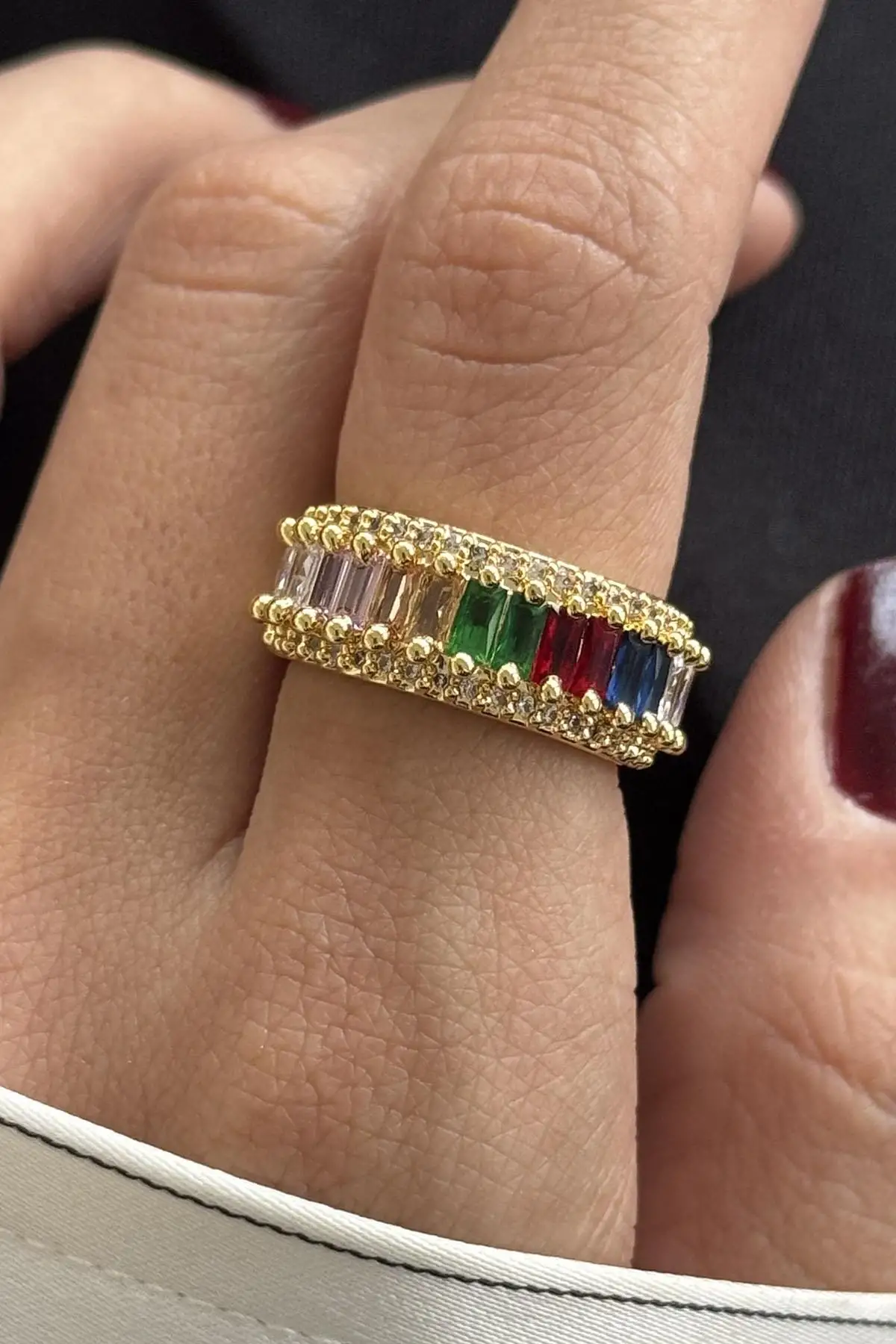 Altın Renk Taş Detaylı Ayarlanabilir Yüzük