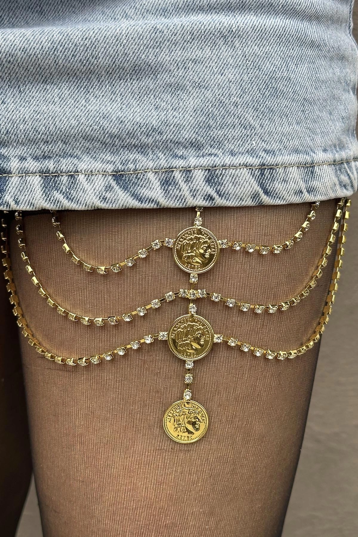 Altın Renk Taş Detaylı Bacak Aksesuarı