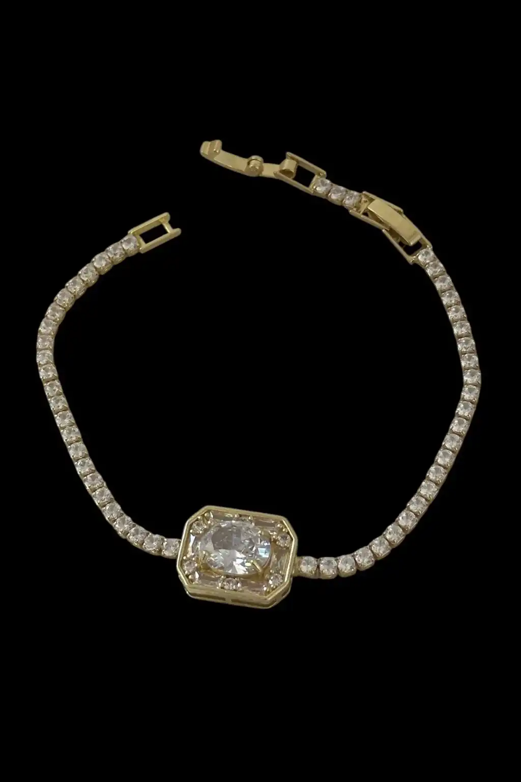Altın Renk Taş Detaylı 14K Altın Kaplama VİP Bileklik