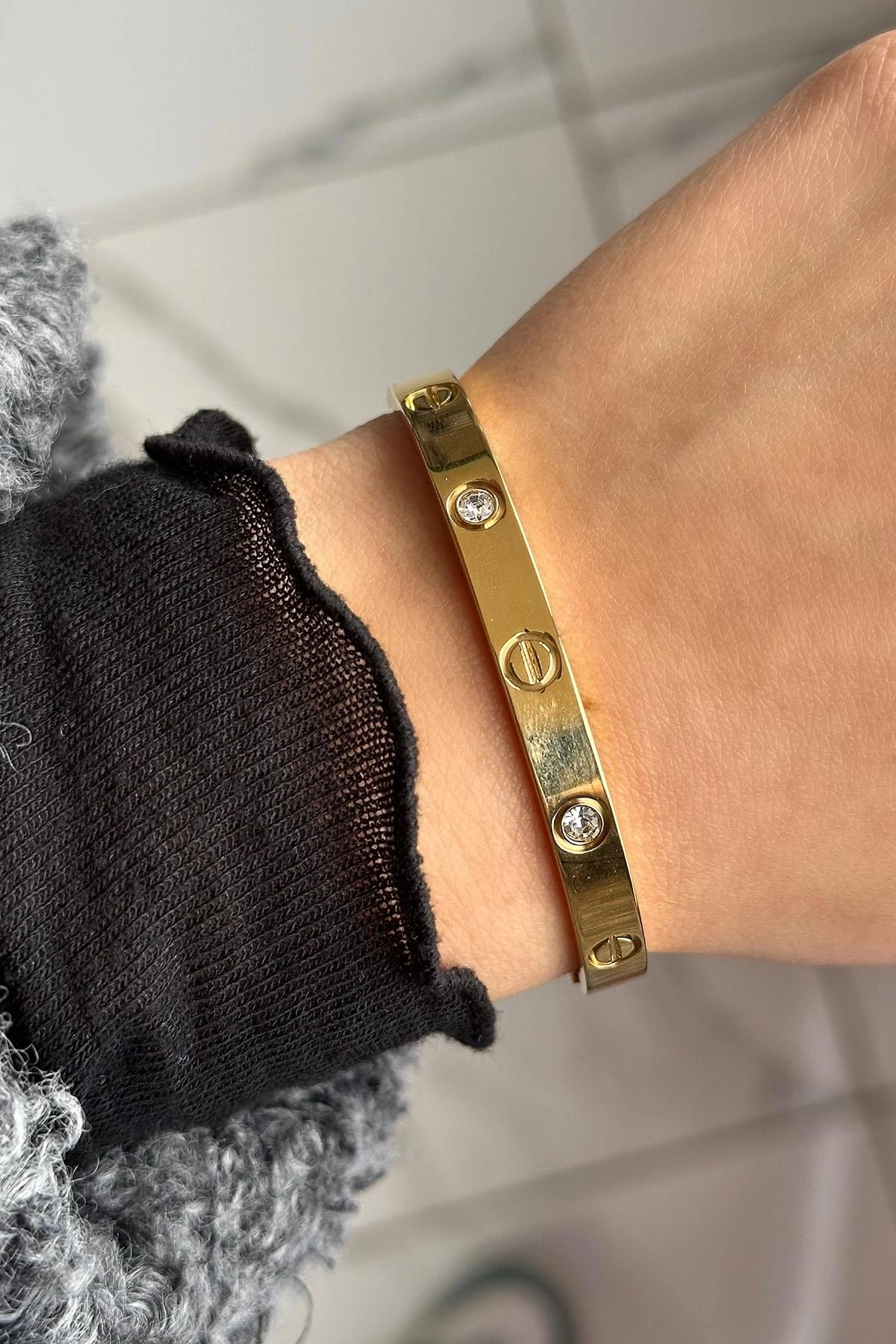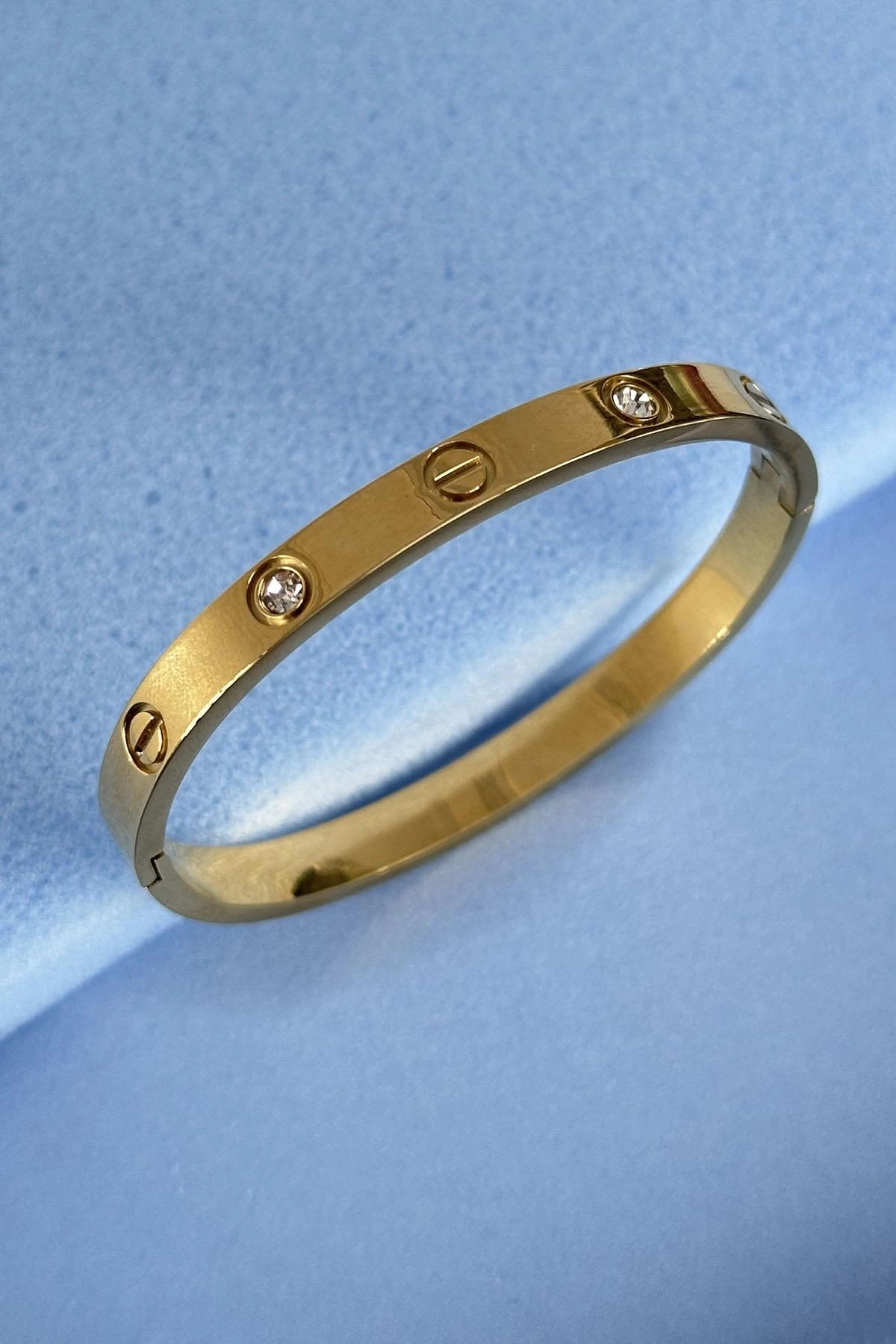 Altın Renk Taş Detaylı Çelik Bileklik (55MM)