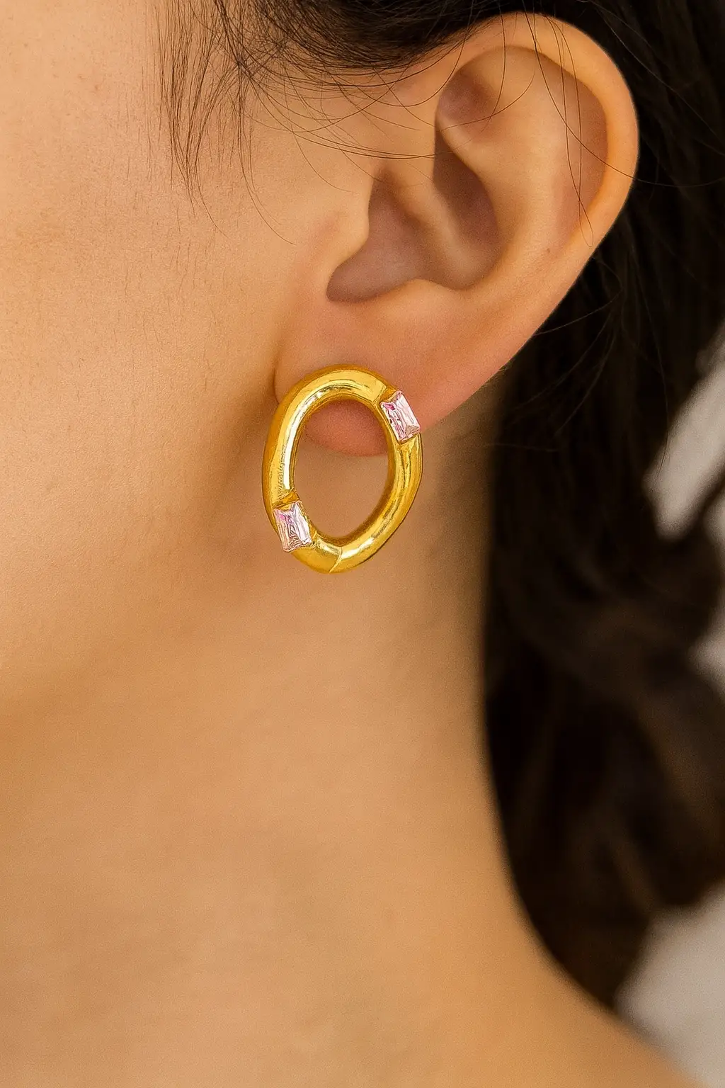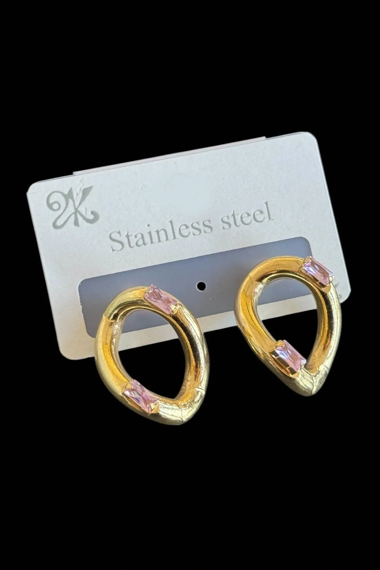 Altın Renk Taş Detaylı Çelik Küpe (Çift)