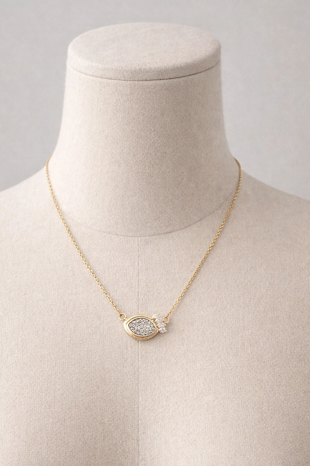 Altın Renk Taş Detaylı Çelik Kolye