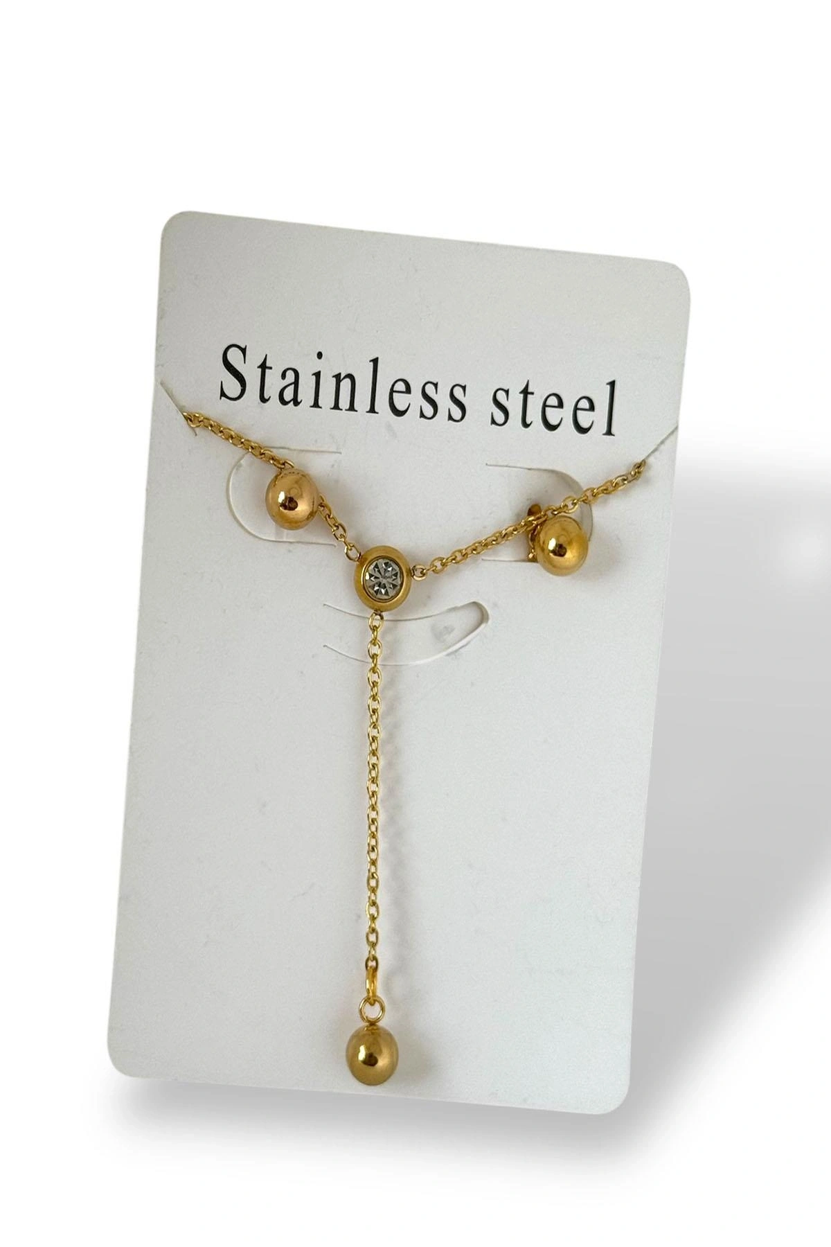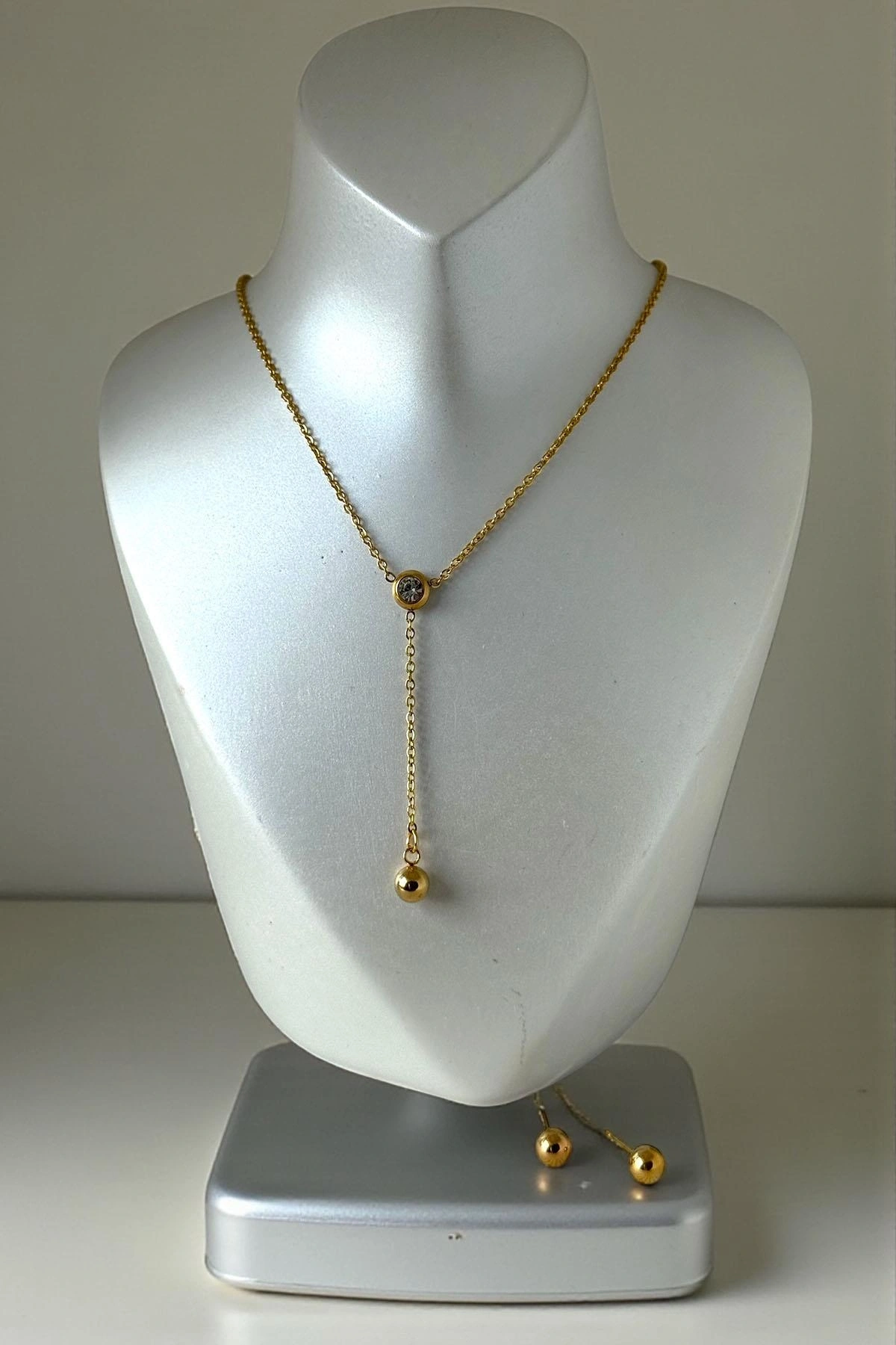 Altın Renk Taş Detaylı Çelik Kolye Set