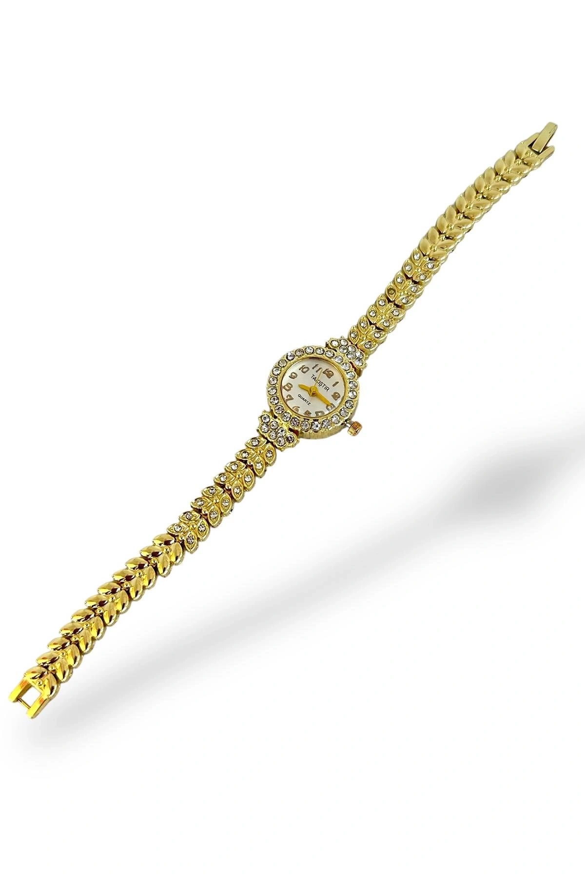 Altın Renk Taş Detaylı Çelik Kordonlu Kadın Saat