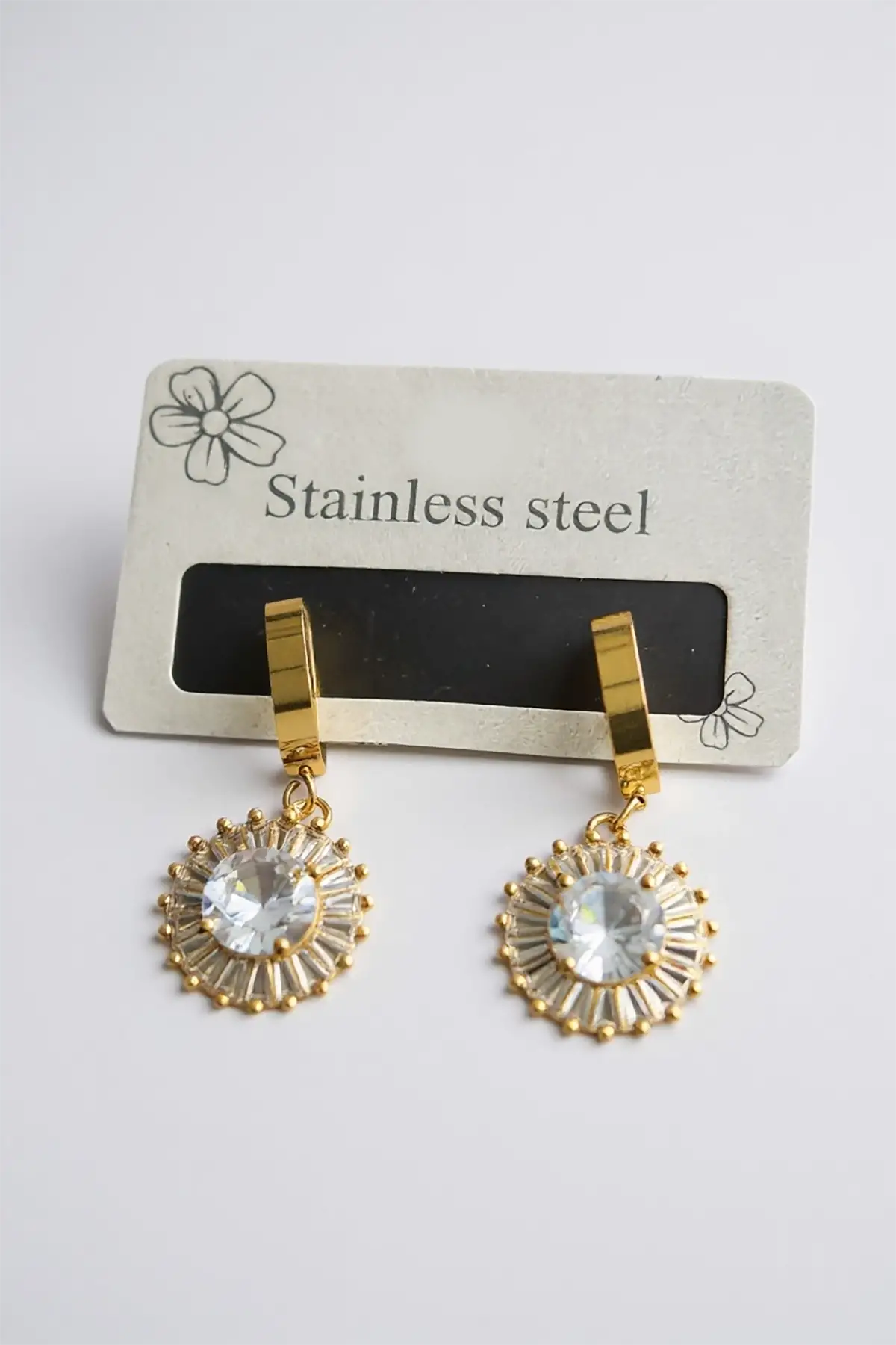 Altın Renk Taş Detaylı Çelik Küpe (Çift)