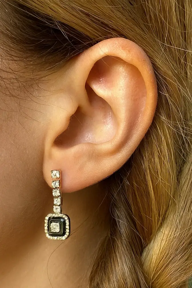 Siyah Renk Çizgi Detaylı Erkek Çelik Küpe (Çift)