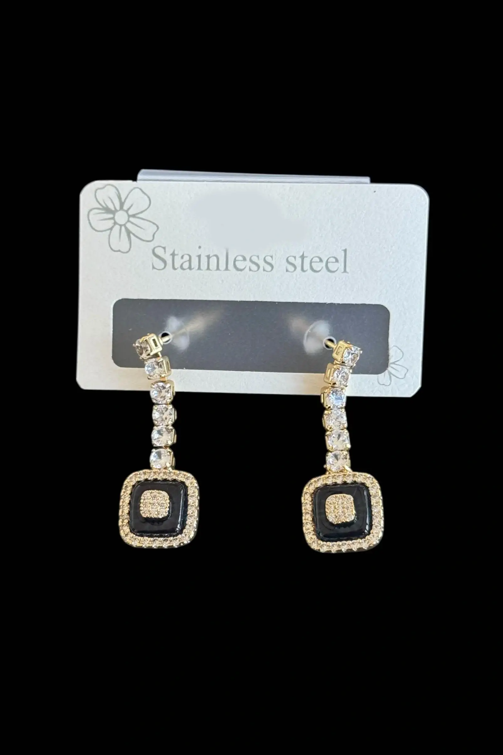 Altın Renk Taş Detaylı Çelik Küpe (Çift)