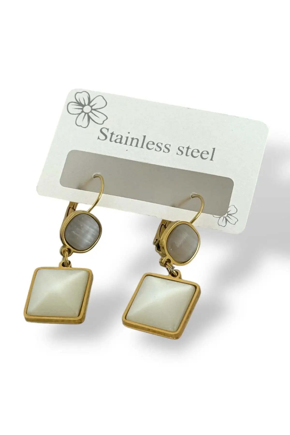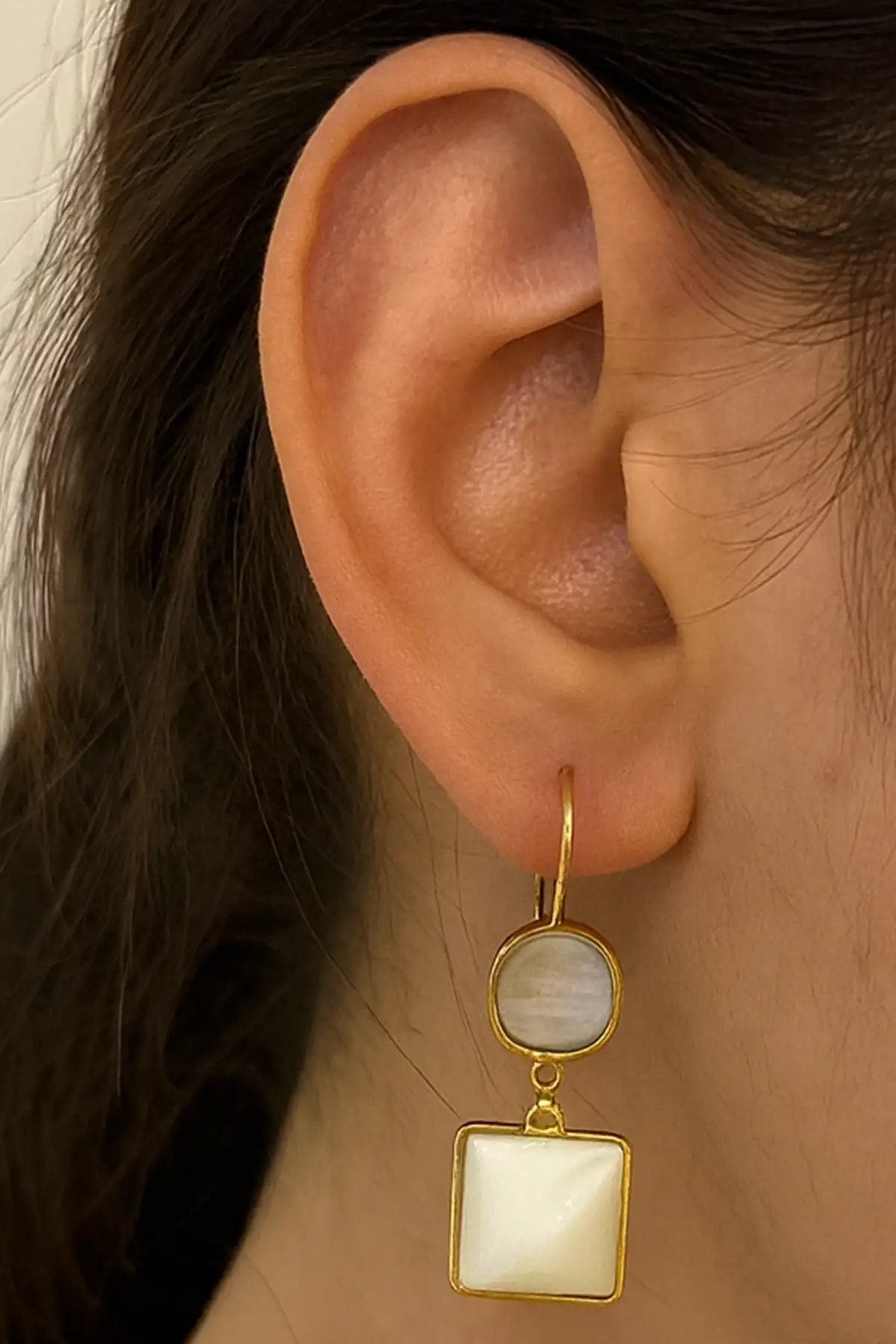 - Zarif tasarımıyla dikkat çeken bu çift küpe, altın rengi detaylarıyla göz alıcı bir görünüm sunar.