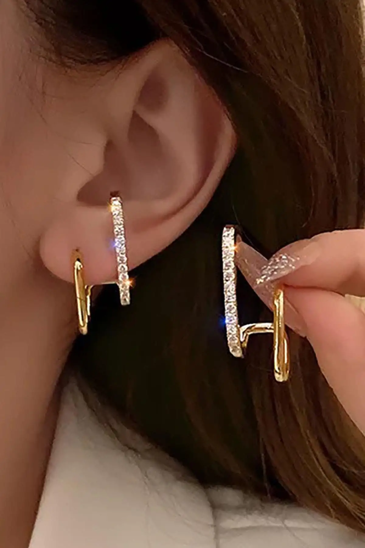 Altın Renk Taş Detaylı Çelik Küpe (Çift)