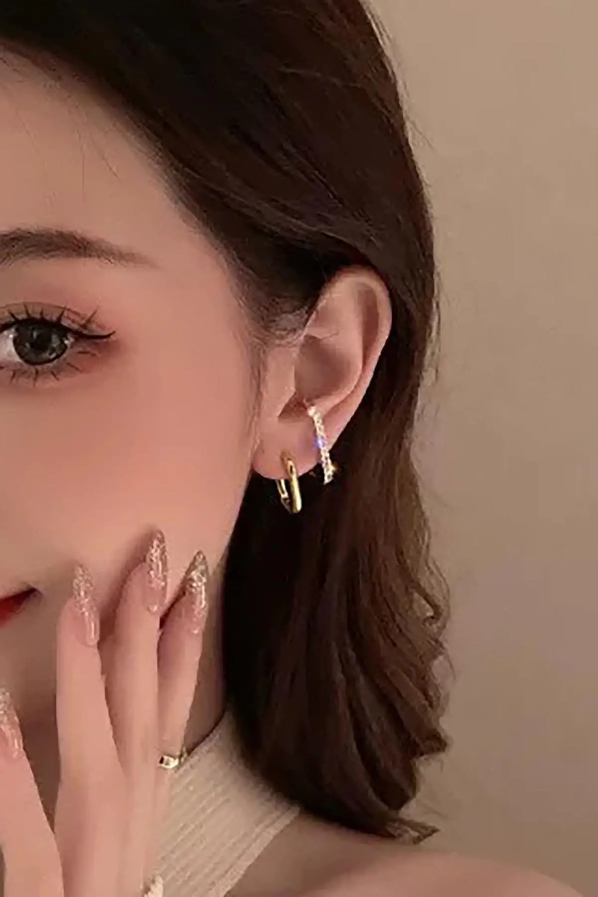 Altın Renk Halka Detaylı Çelik Küpe (Çift)