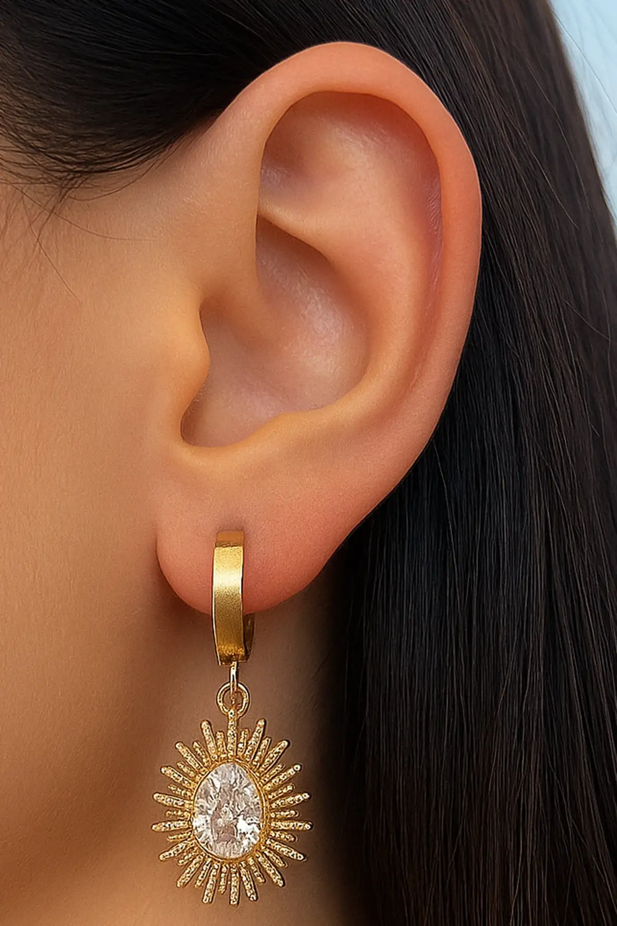 - Zarif tasarımıyla dikkat çeken bu çift küpe, altın rengi detaylarıyla göz alıcı bir görünüm sunar.