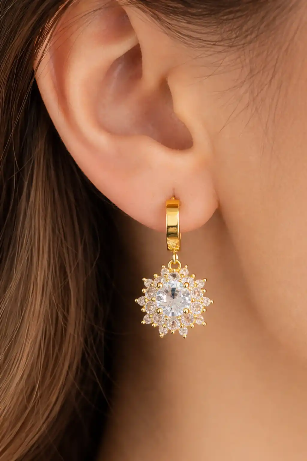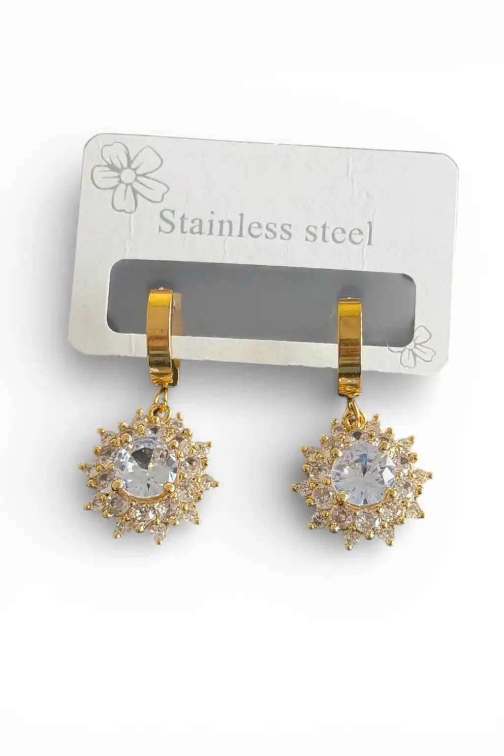 Altın Renk Çiçek Figürlü Çelik Küpe (Çift)