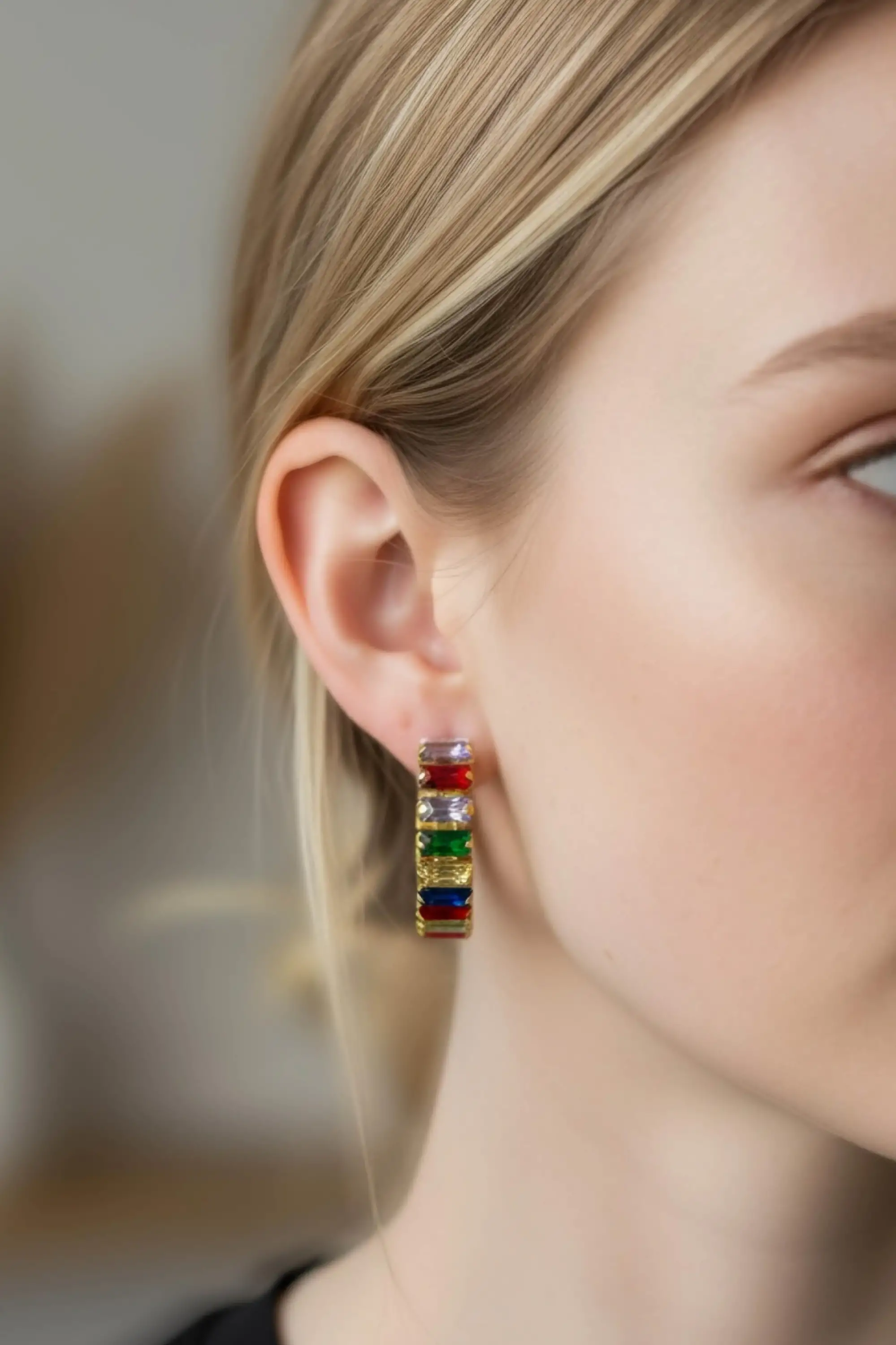 Altın Renk Taş Detaylı Çelik Küpe (Çift)