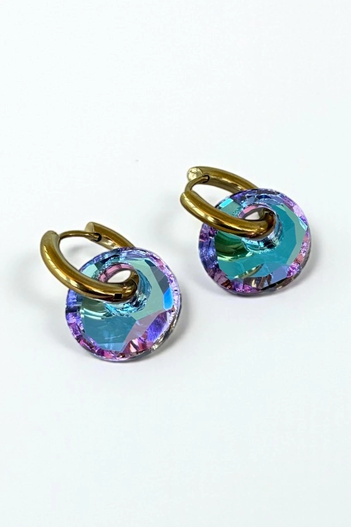 Altın Renk Taş Detaylı Çelik Küpe (Çift)