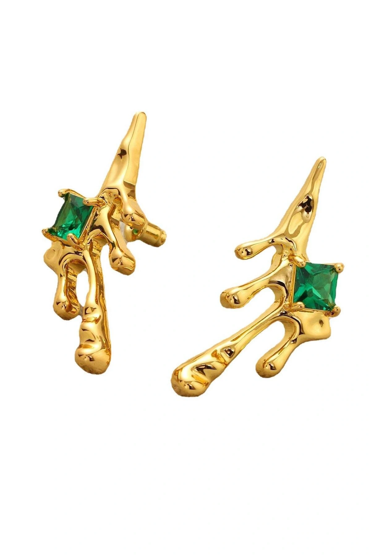 Altın Renk Taş Detaylı Çelik Küpe (Çift)