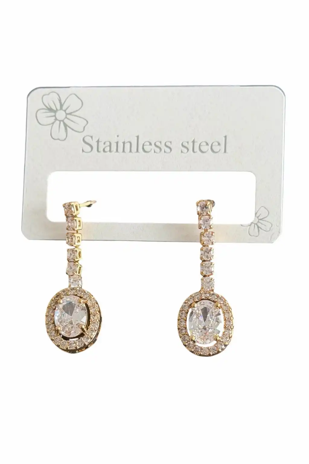Altın Renk Taş Detaylı Çelik Küpe (Çift)