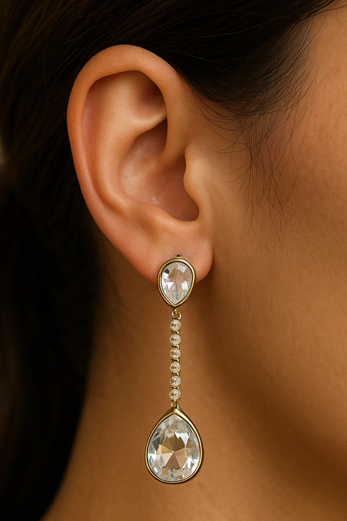 - Zarif tasarımıyla dikkat çeken bu çift küpe, altın rengi detaylarıyla göz alıcı bir görünüm sunar.
