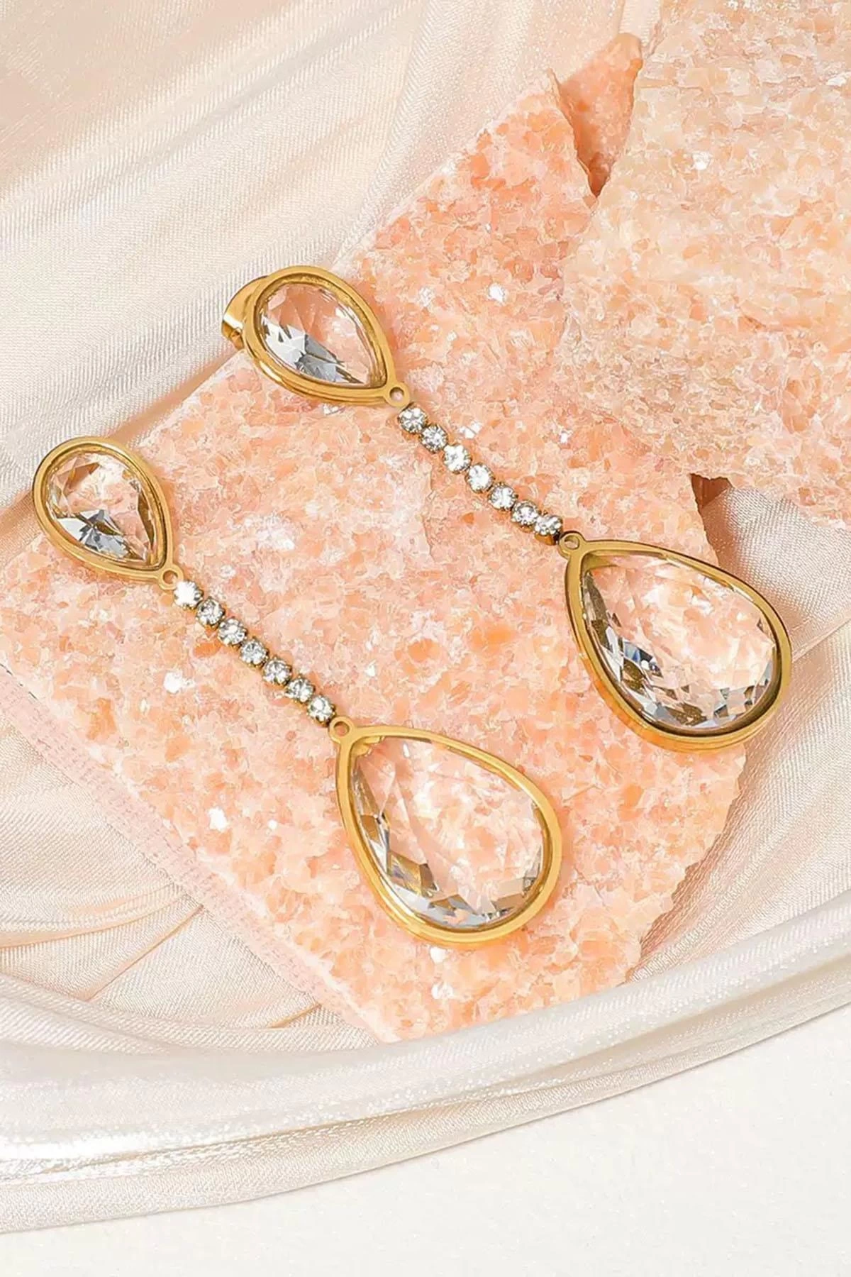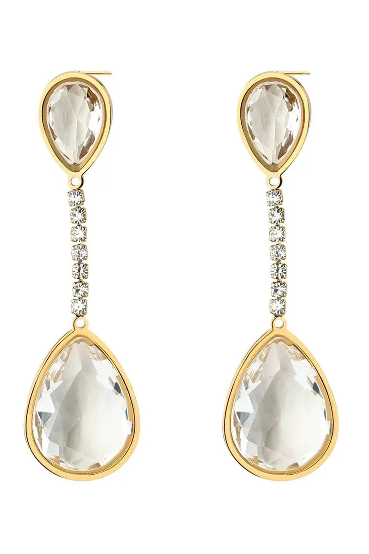 Altın Renk Taş Detaylı Çelik Küpe (Çift)