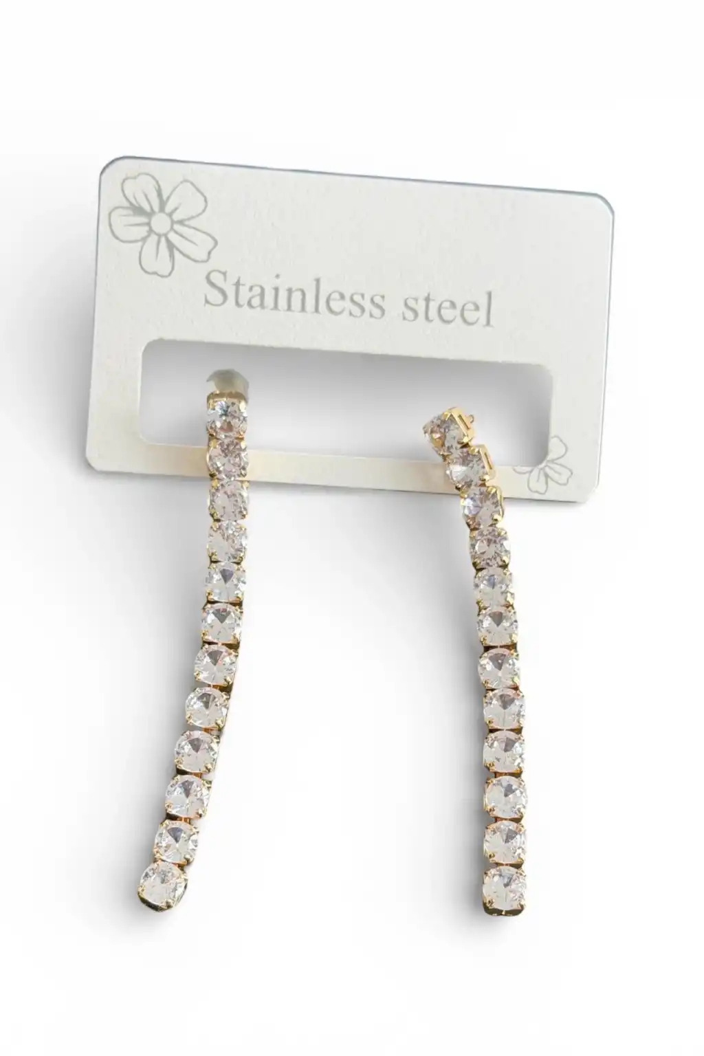 Altın Renk Taş Detaylı Çelik Küpe (Çift)