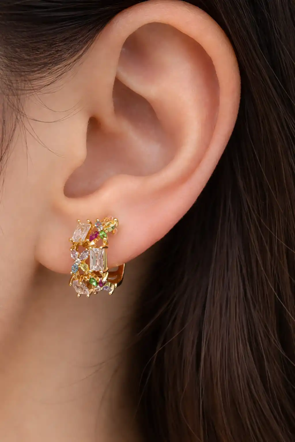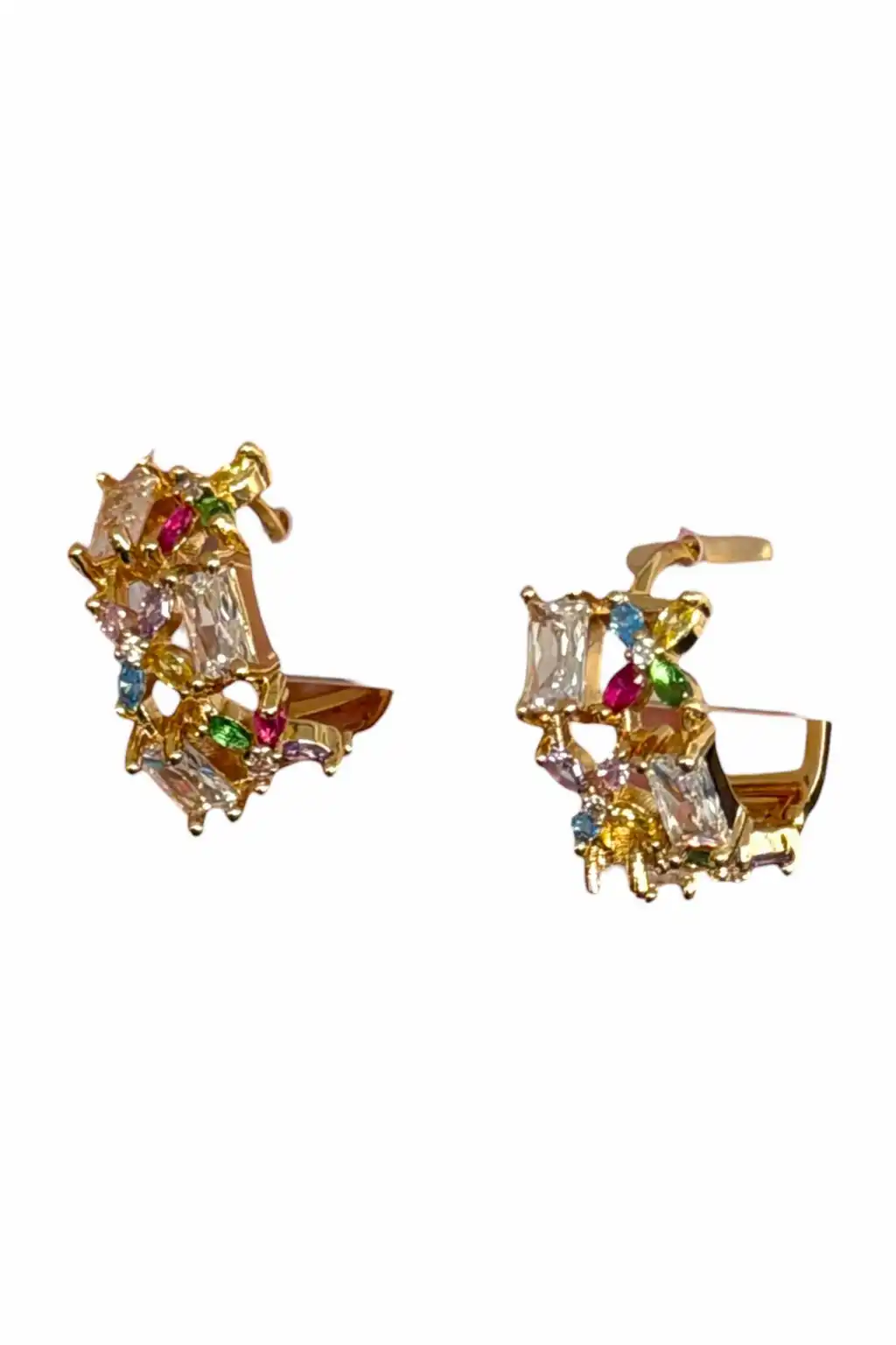 Altın Renk Taş Detaylı Çelik Küpe (Çift)