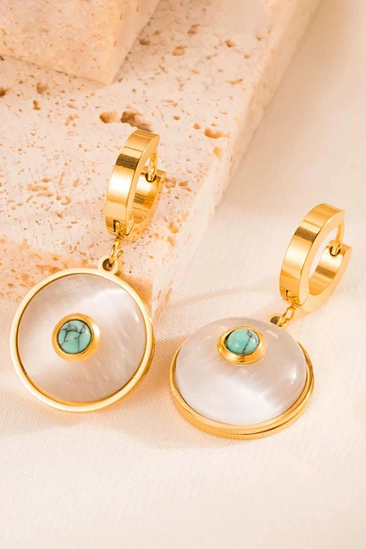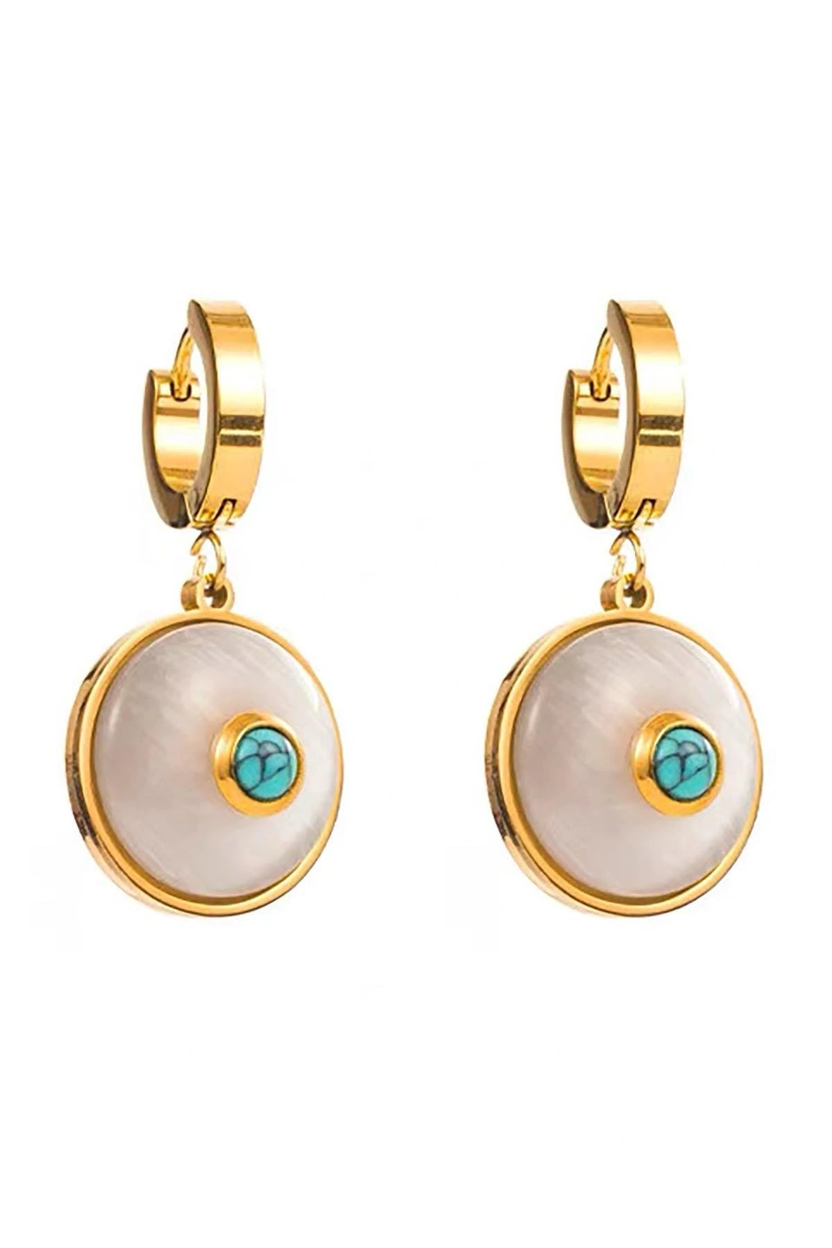 Altın Renk Taş Detaylı Çelik Küpe (Çift)
