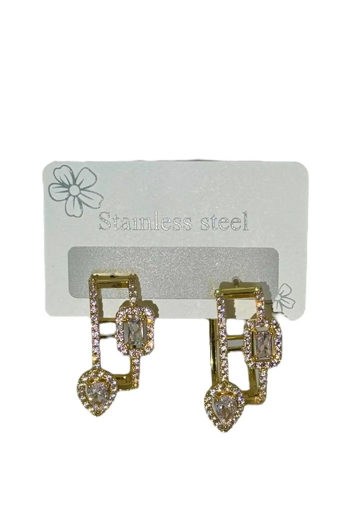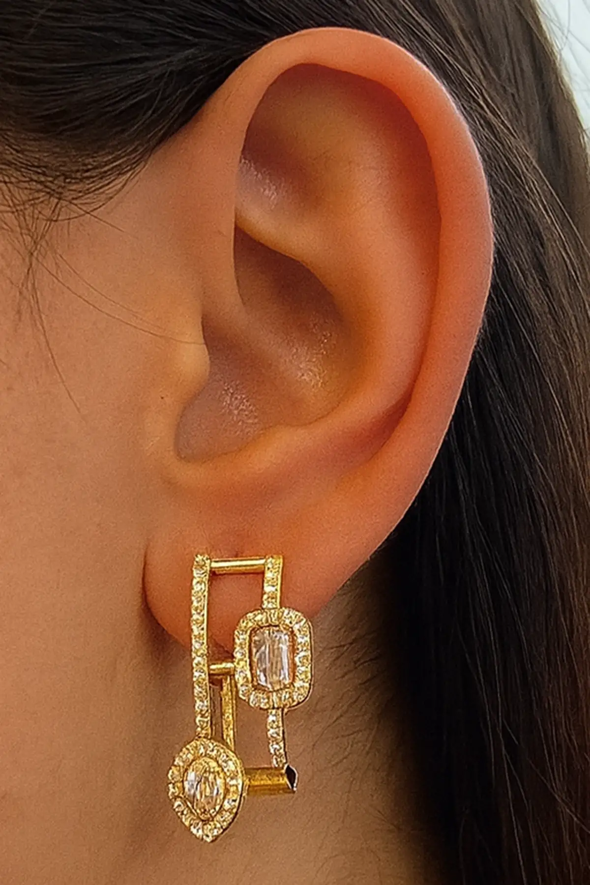 - Zarif tasarımıyla dikkat çeken bu çift küpe, altın rengi detaylarıyla göz alıcı bir görünüm sunar.