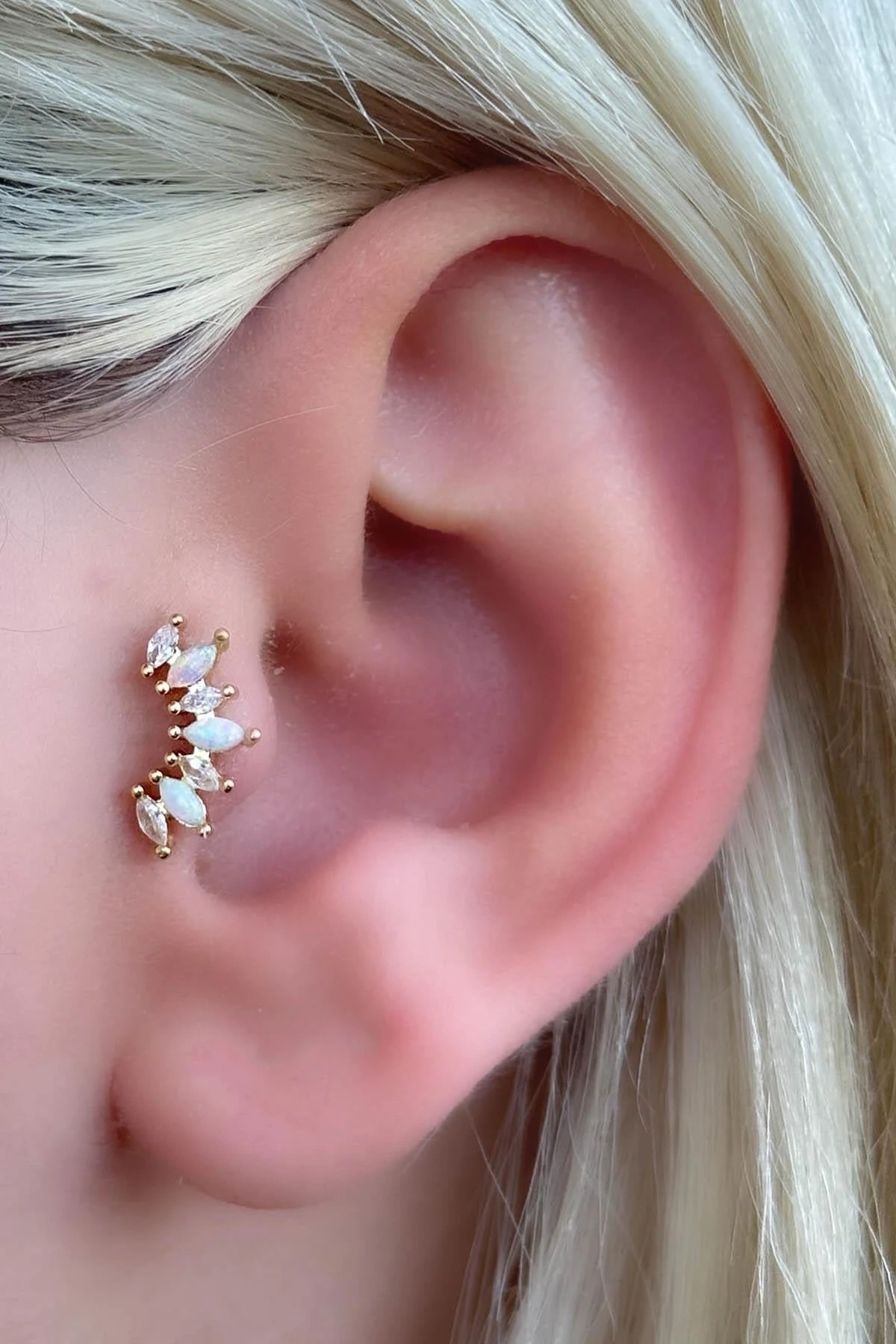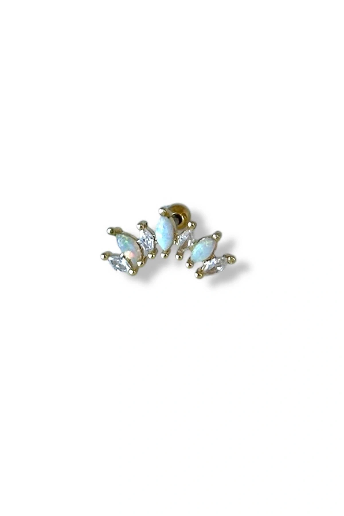 Altın Renk Taş Detaylı Çelik Tragus/Kıkırdak Küpe/Piercing (Tek)