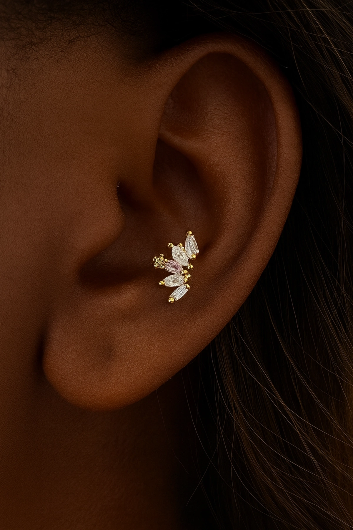 Altın Renk Taş Detaylı Çelik Tragus/Kıkırdak Küpe/Piercing (Tek)