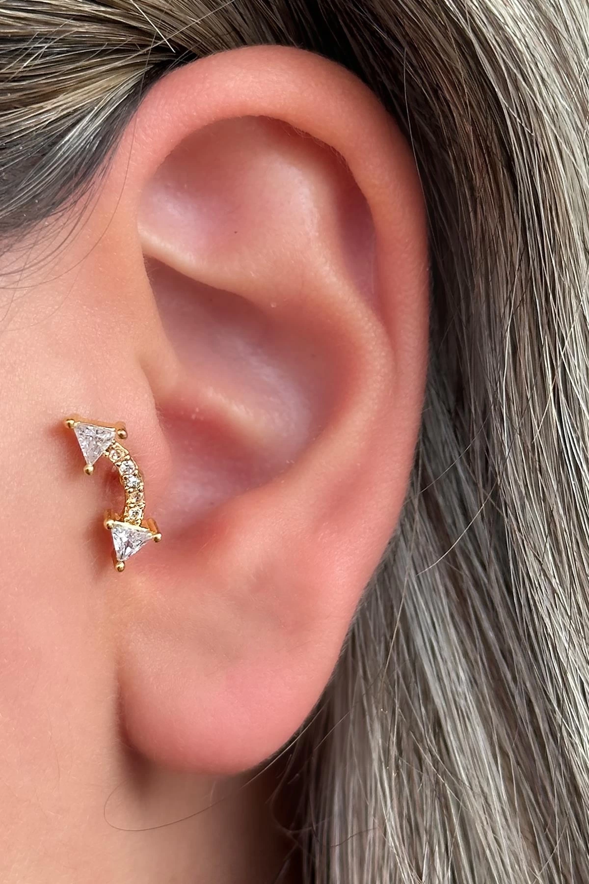 Altın Renk Taş Detaylı Çelik Tragus/Kıkırdak Küpe/Piercing (Tek)