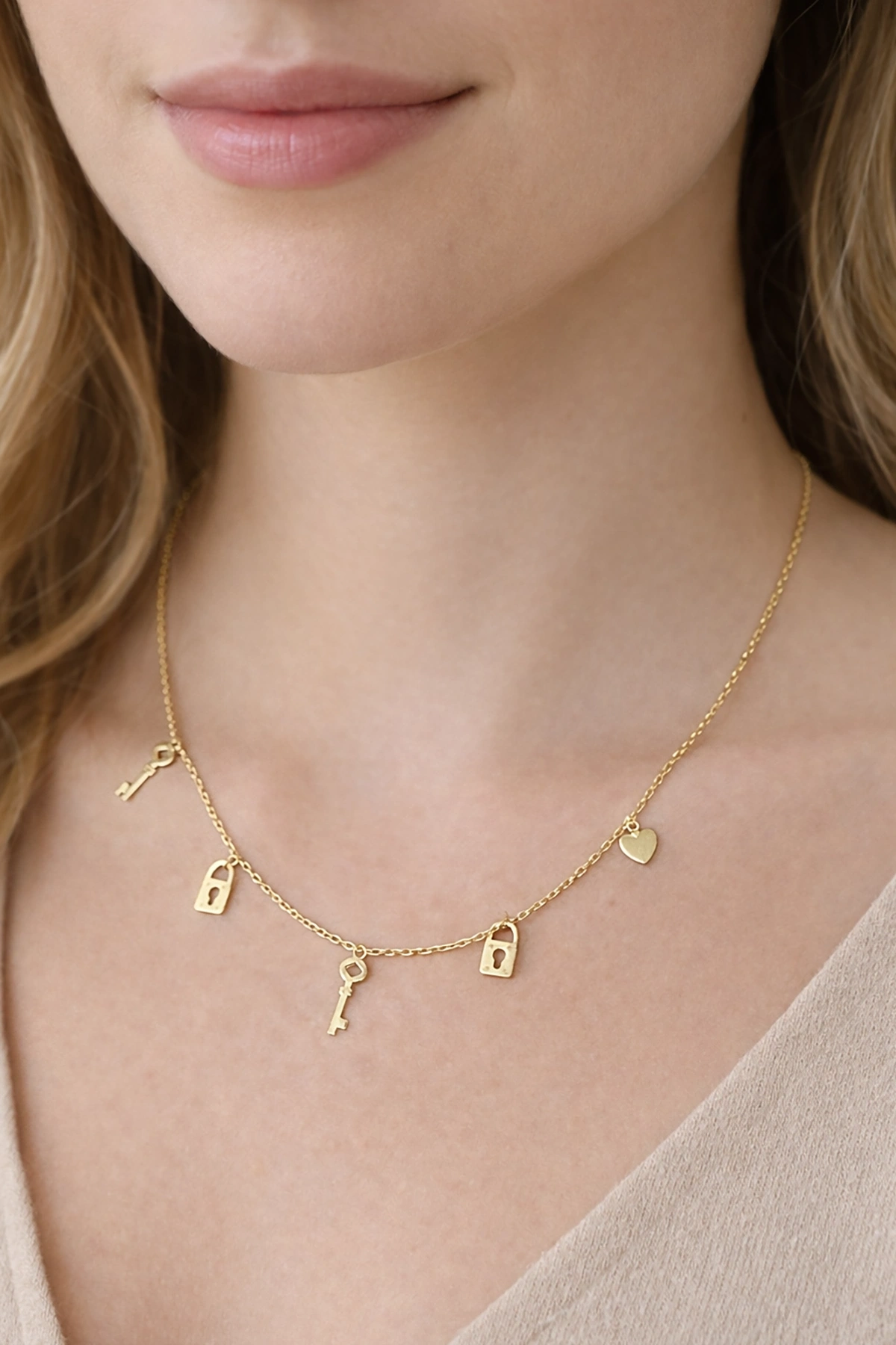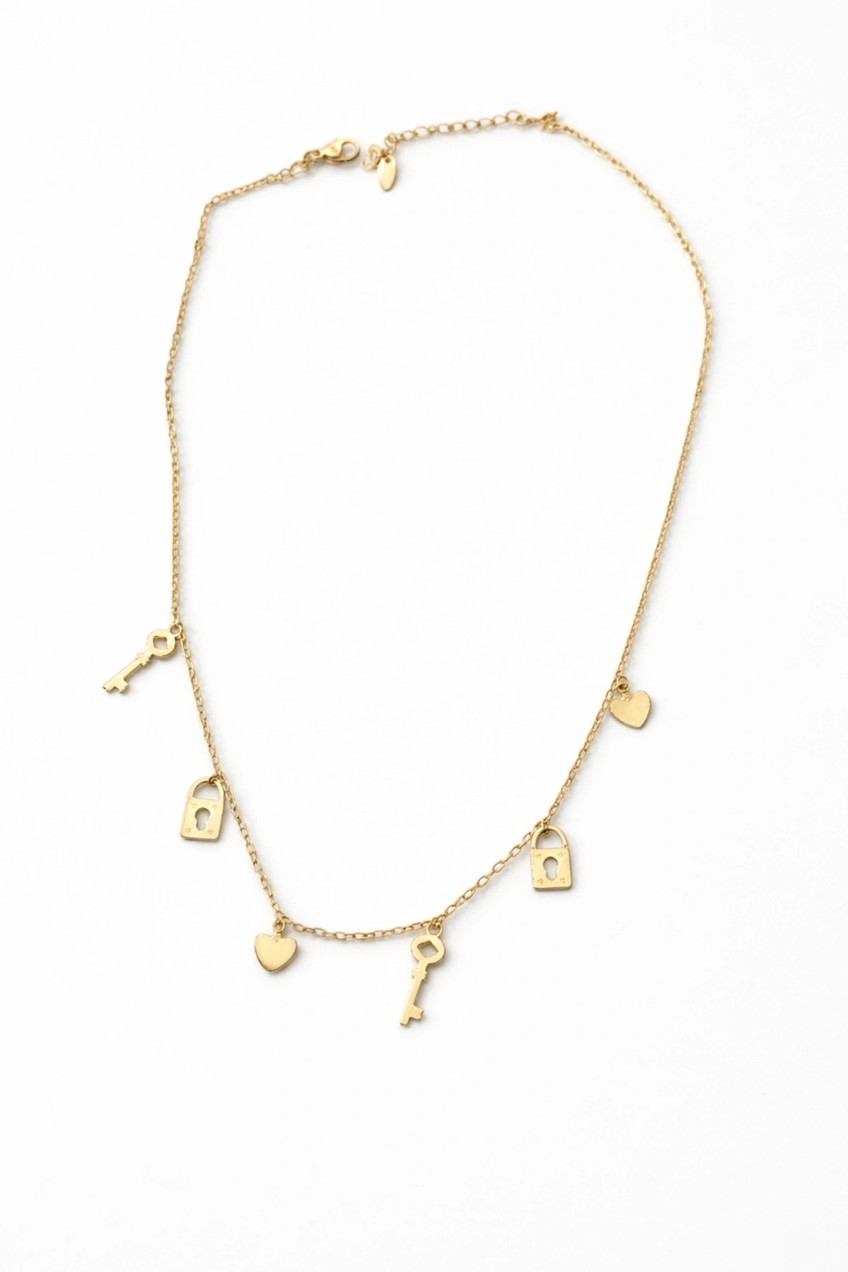 Altın Renk Taş Detaylı Çelik Xupıng Kolye