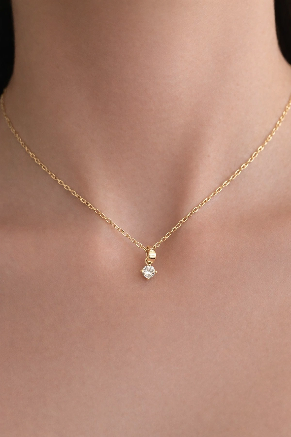 Altın Renk Taş Detaylı Çelik Xupıng Kolye